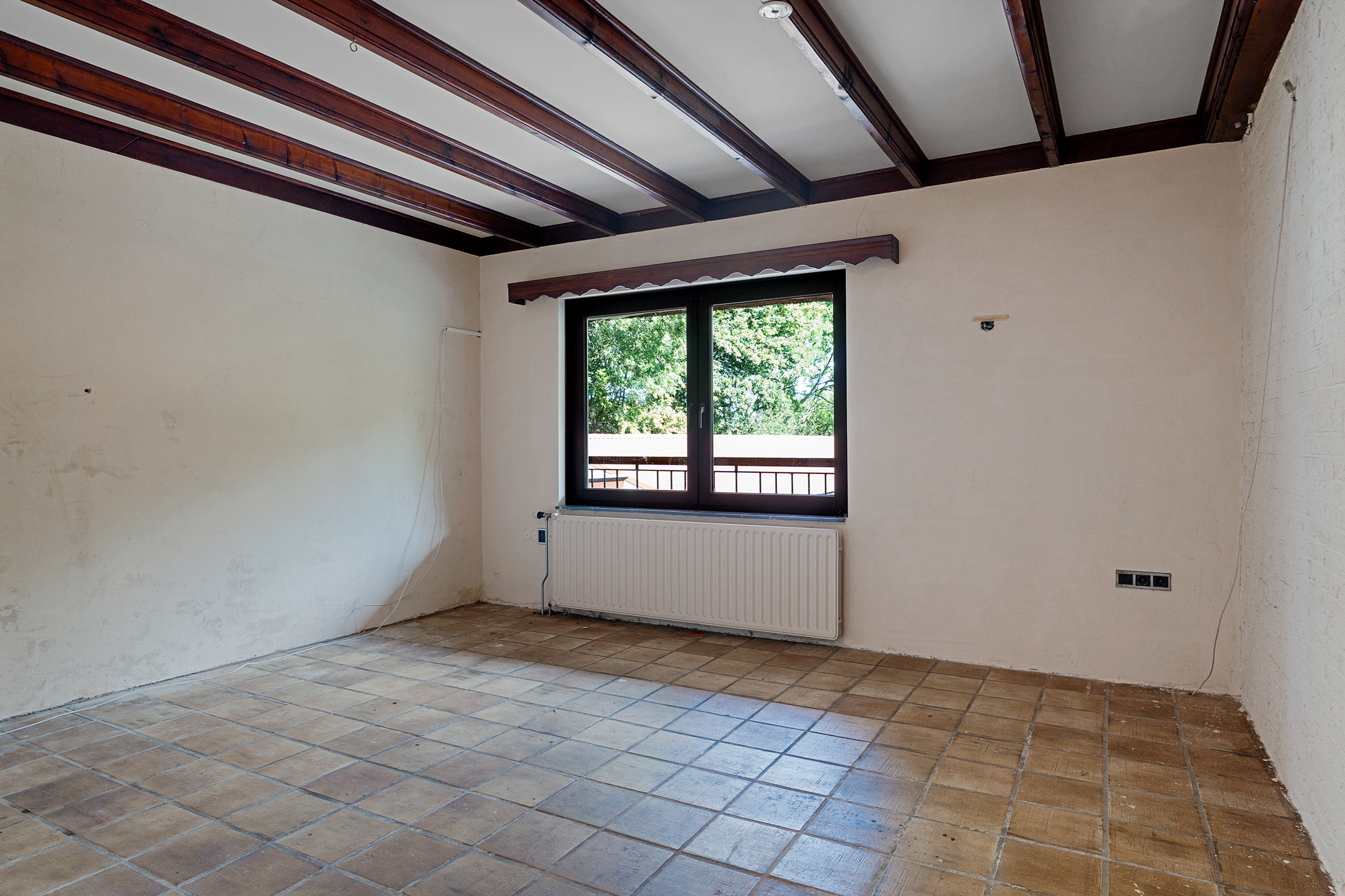 + Riante woonkamer met sfeervolle balkenplafonds en haard