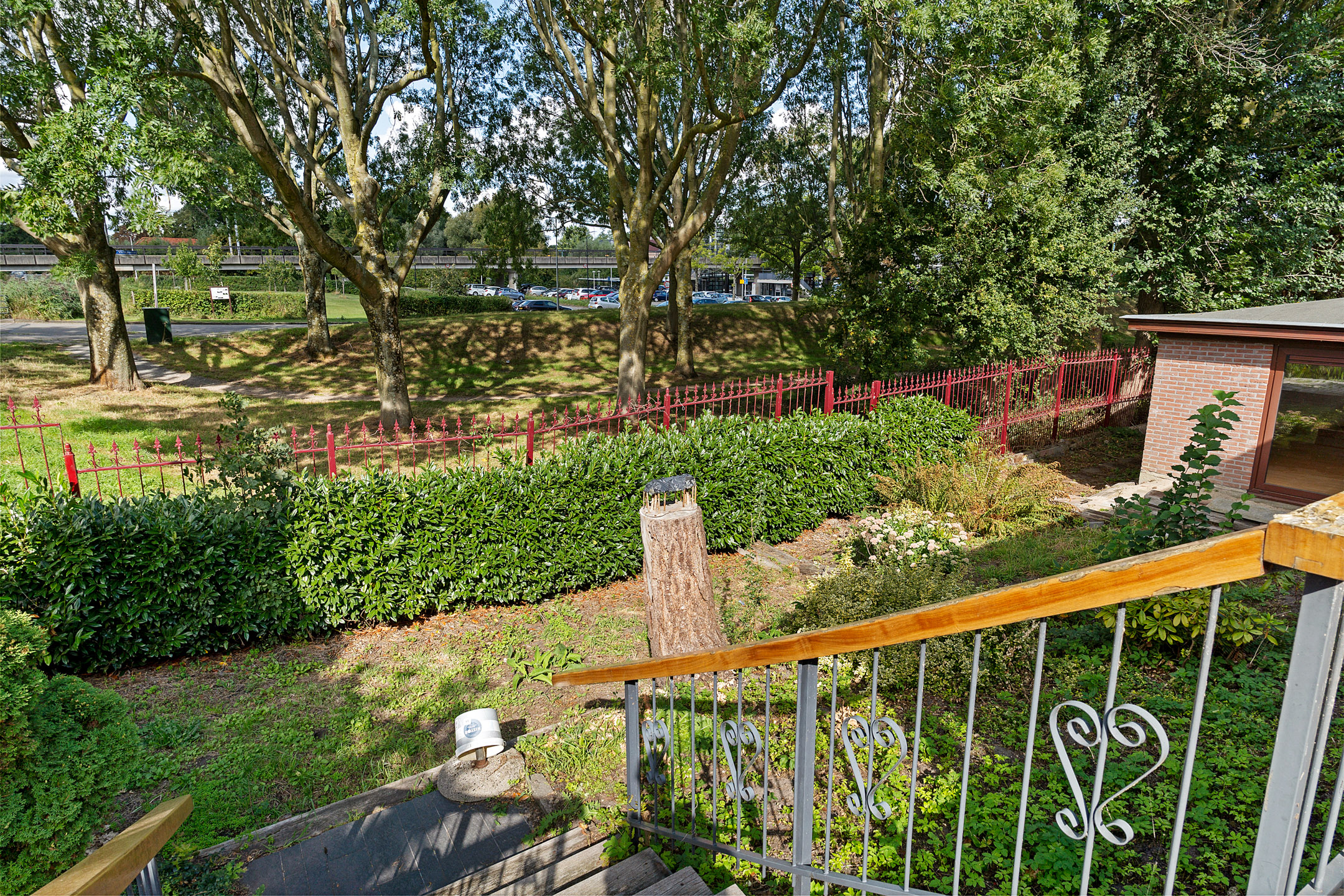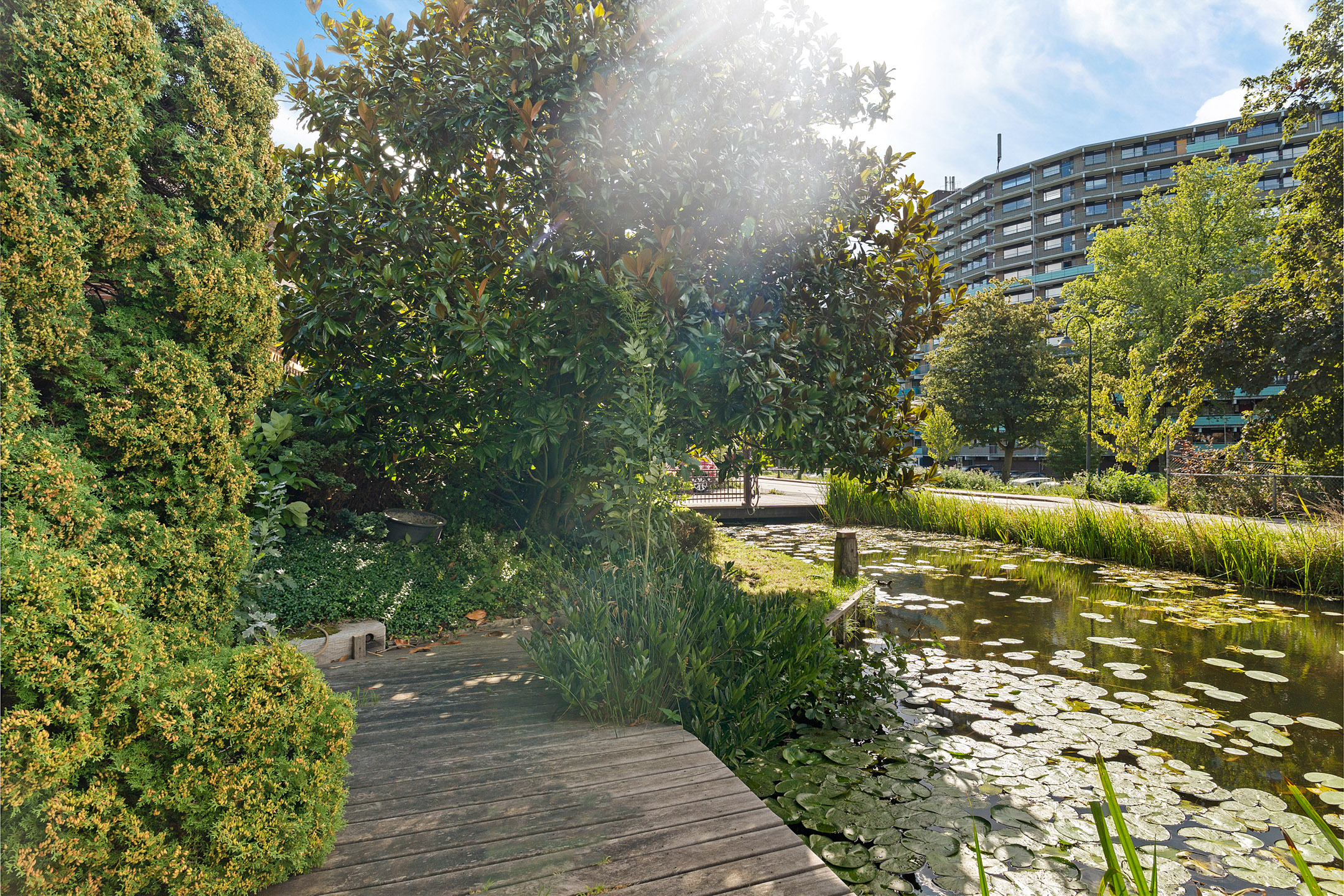 De tuin rondom de woning is volledig aangelegd met volwassen beplanting, zitplekken en een houten vlonder aan het water. Via de eigen brug betreedt men dit privé perceel met optimale privacy, aan een rustige laan met nauwelijks doorgaand verkeer.