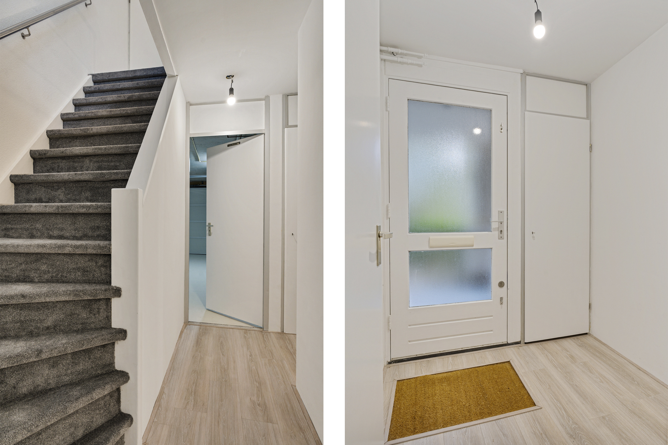 De entree bevindt zich direct aan de achterzijde. De woning heeft een eigen toegang op de begane grond en beschikt over een royale inpandige garage die zowel via buiten als via de woning toegankelijk is. Dit maakt het ideaal voor hobbyruimte, werken aan huis of het stallen van een auto of motor.