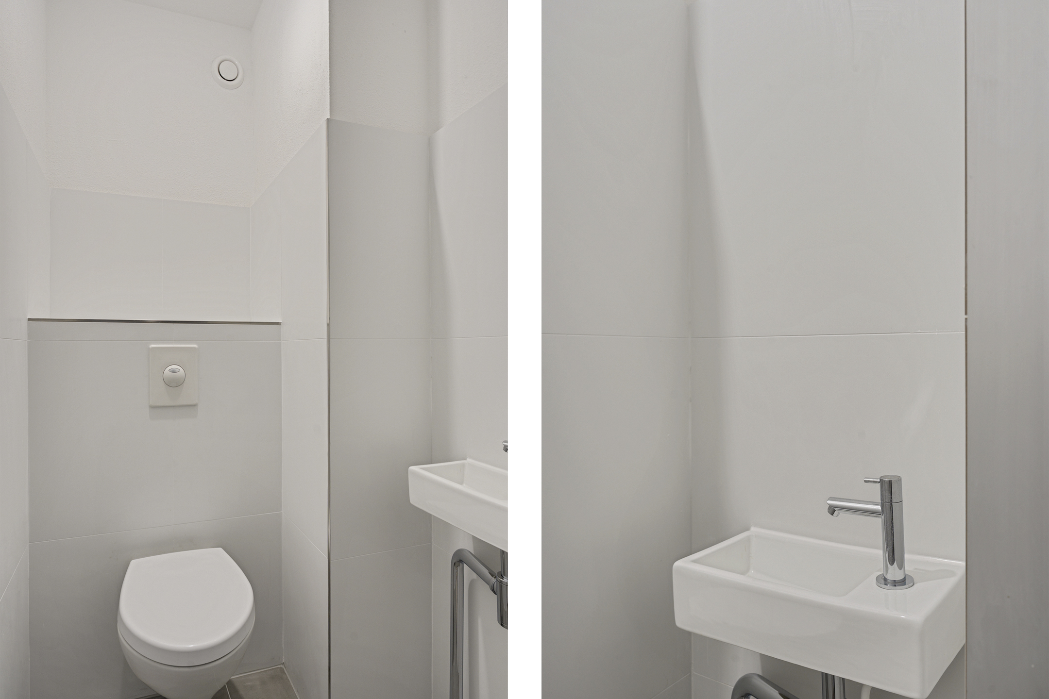 Aan de achterzijde bevindt zich de keuken, voorzien van inbouwapparatuur en met ruimte om een gezellige eetplek te creëren. Daarnaast bevindt zich hier slaapkamer 2, ideaal als master bedroom, werk- of logeerkamer. Het recent vernieuwd toilet op deze verdieping maakt het plaatje compleet.