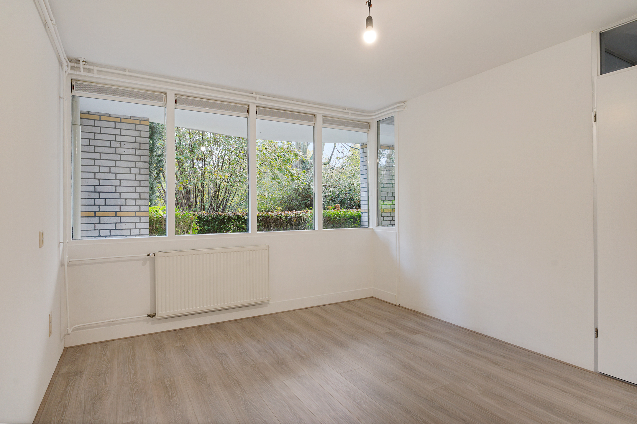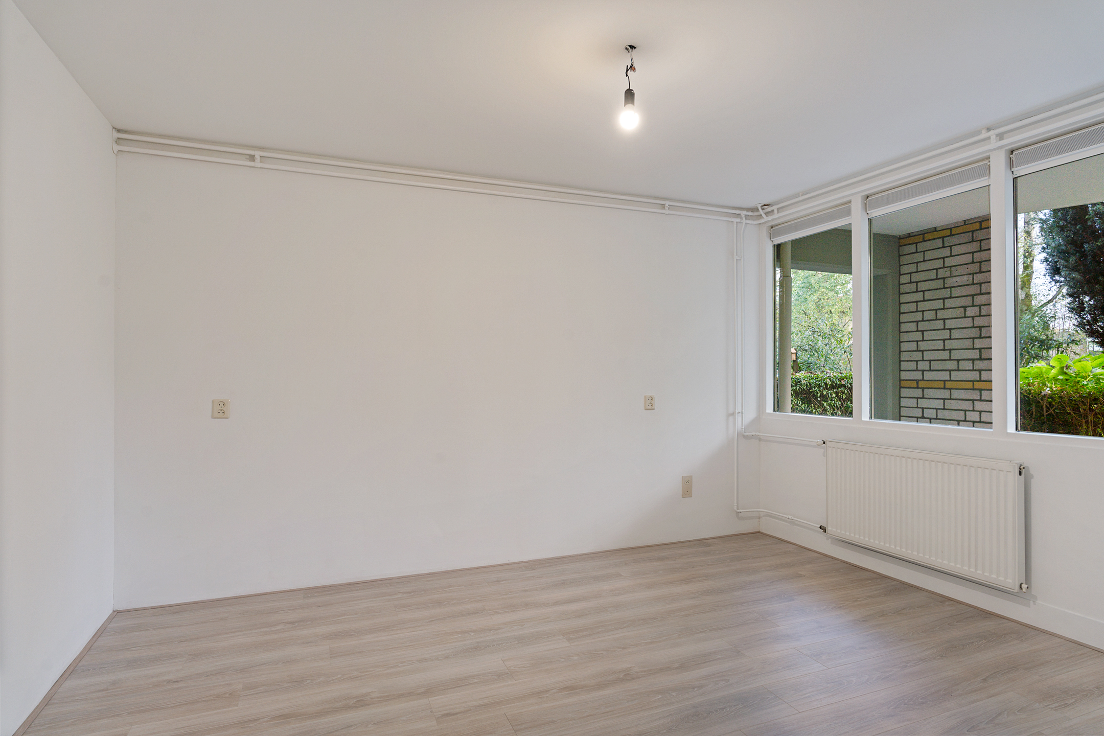De ruime woonkamer valt direct op door de heerlijke lichtinval en het vrije uitzicht op het groen. De grote aluminium schuifpui geeft toegang tot het balkon op het zuiden, een fantastische plek om te genieten van zon en rust met zicht op Park Seghwaert.