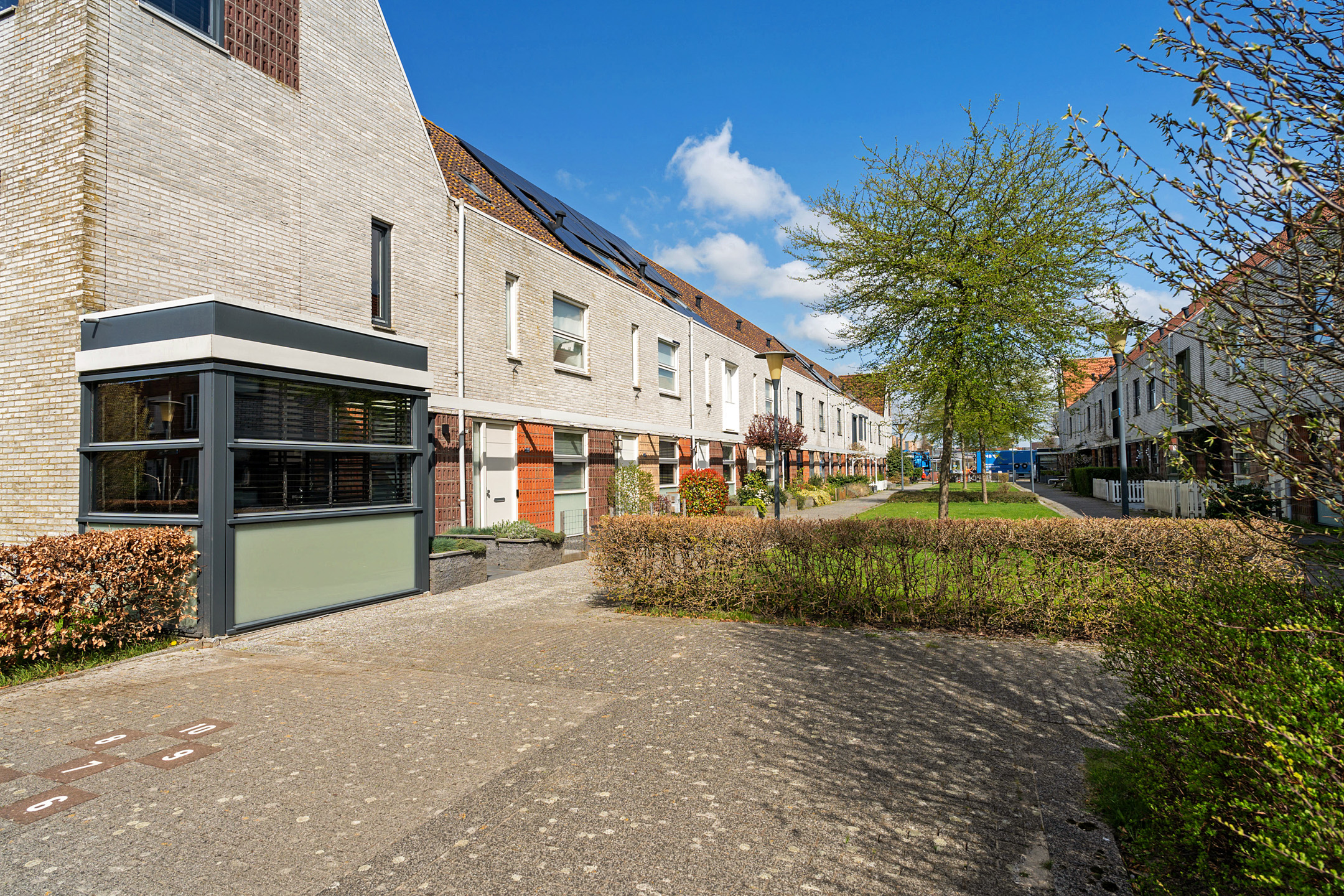 De verzorgde achtertuin is onderhoudsvriendelijk aangelegd en beschikt over een vrijstaande stenen berging. Aan de achterzijde van het perceel bevinden zich twee privé parkeerplaatsen op een afgesloten terrein – een fijne luxe in een woonwijk als deze.