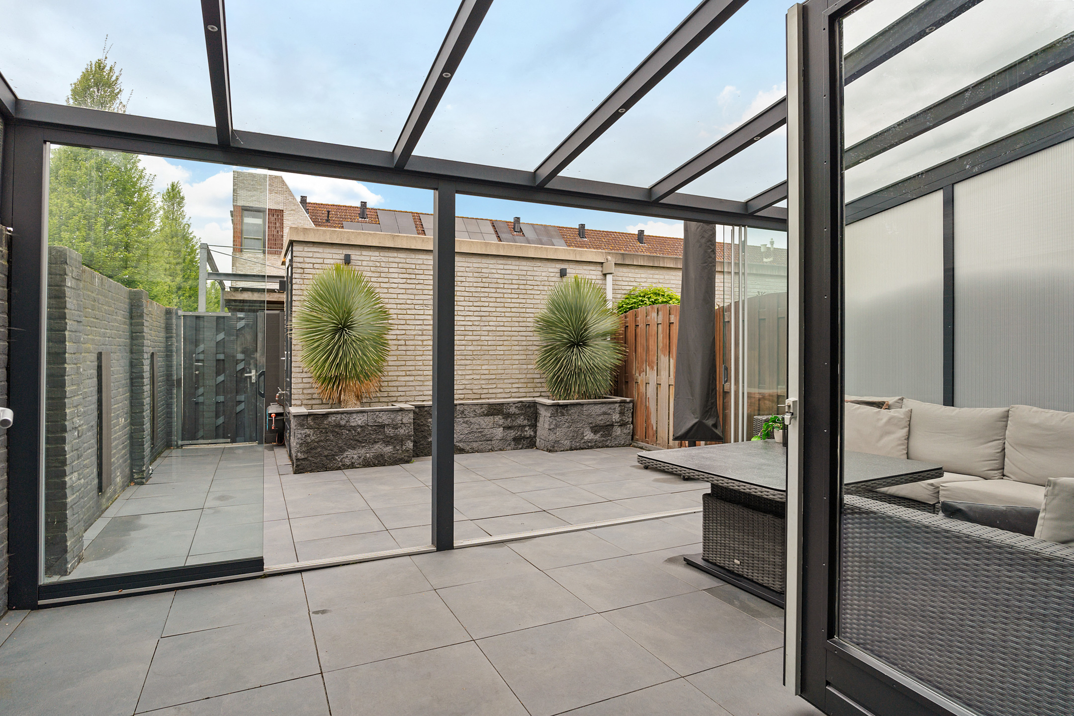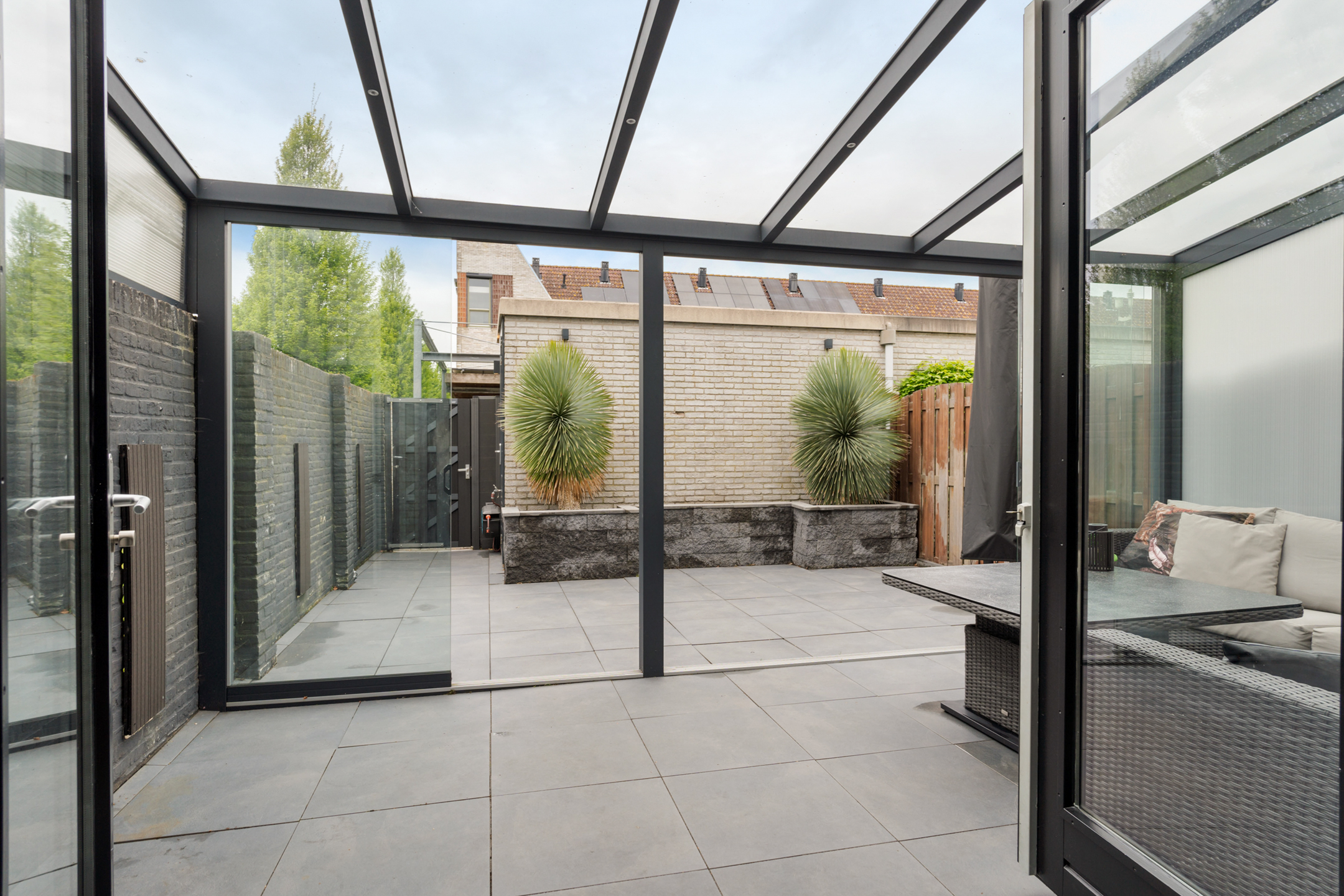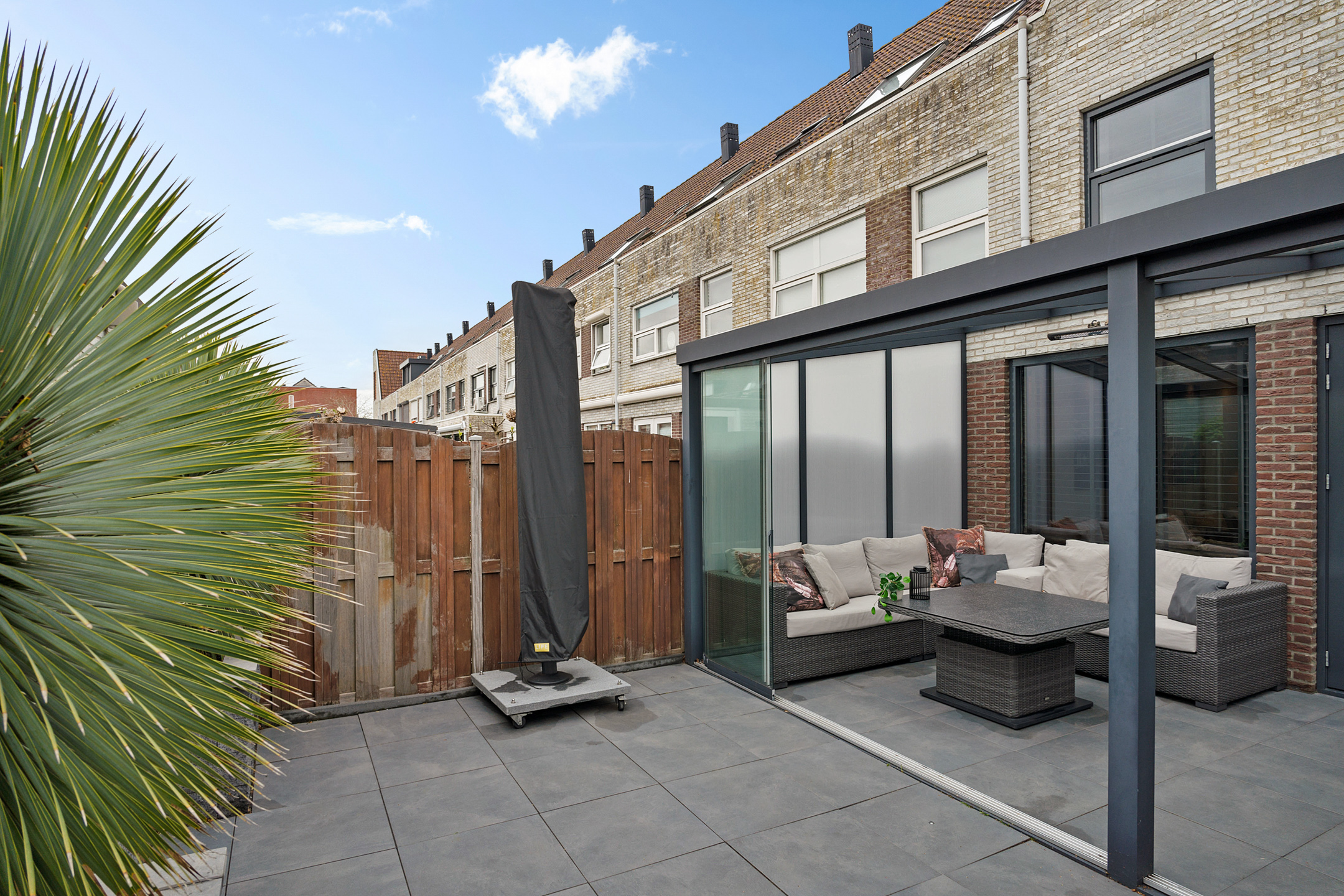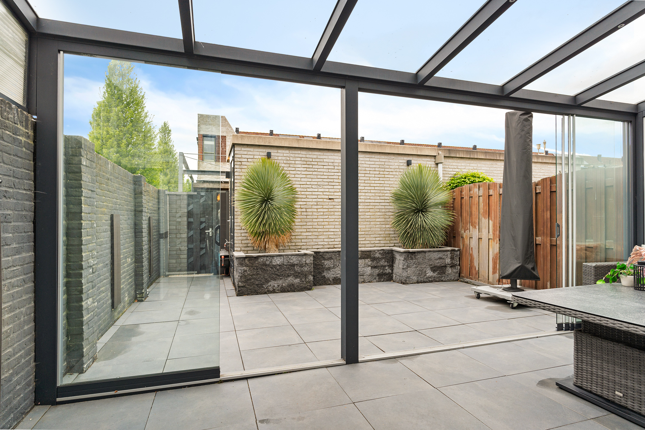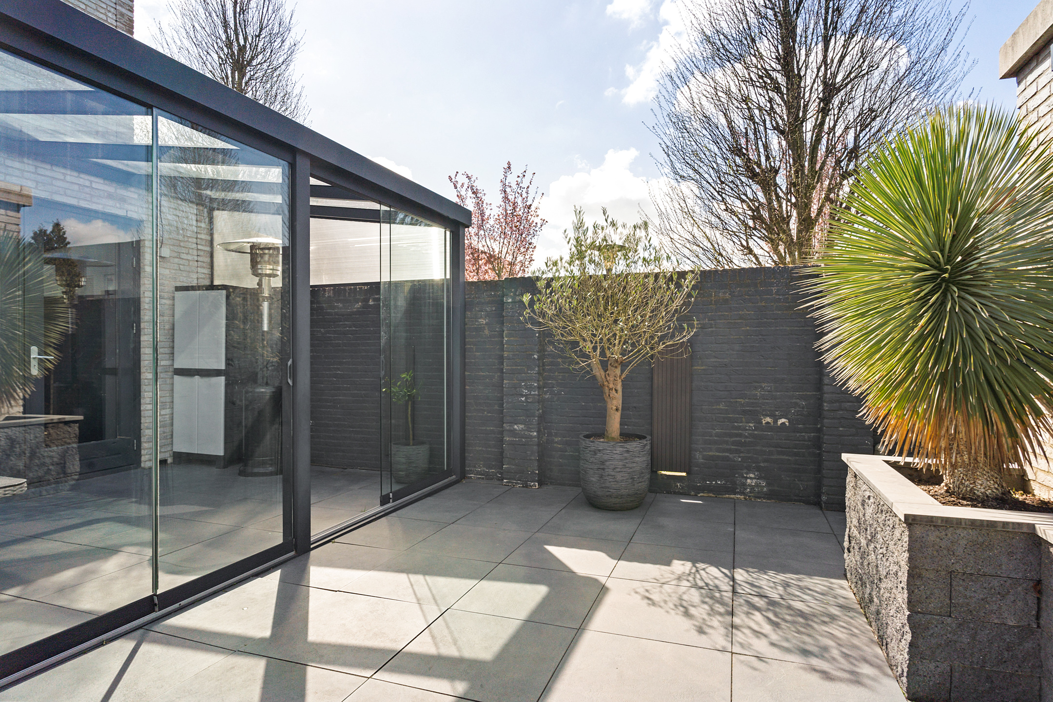 De aangebouwde serre biedt extra leefruimte en zorgt voor een natuurlijke overgang naar buiten.
