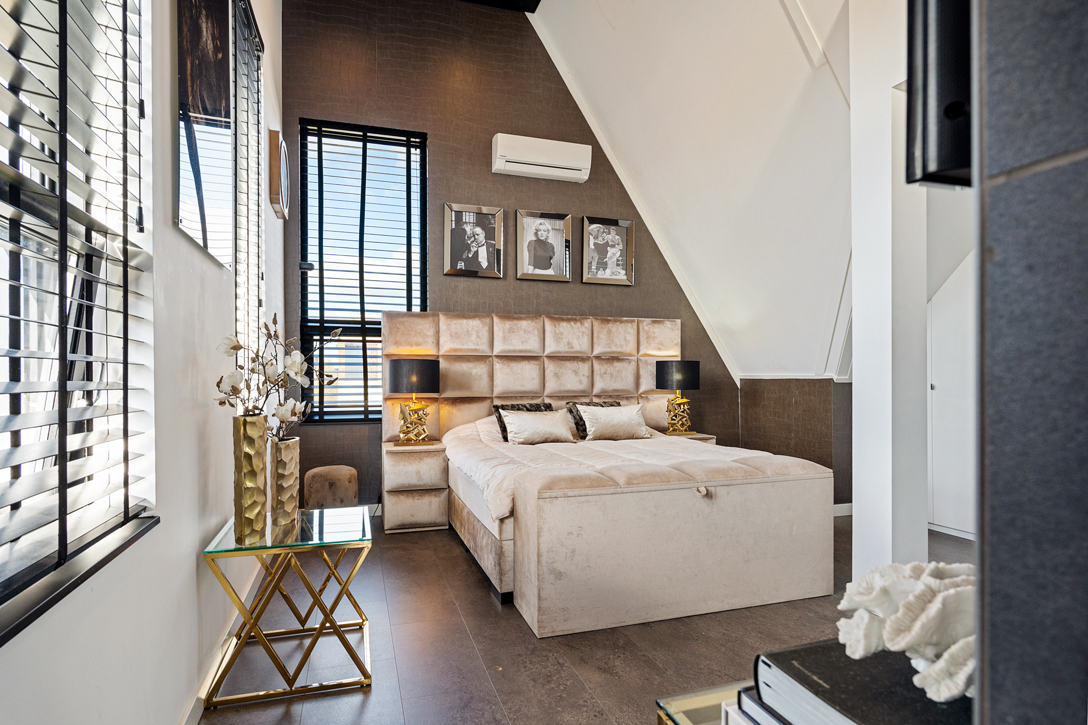 De tweede verdieping is een ware eyecatcher: een ruime loft die is ingericht als master bedroom, met een luxe badkamer en suite – een privé hotelervaring in eigen huis. De badkamer en suite beschikt o.a. over vloerverwarming, een dubbele wastafelmeubel, inloopdouche en toilet.