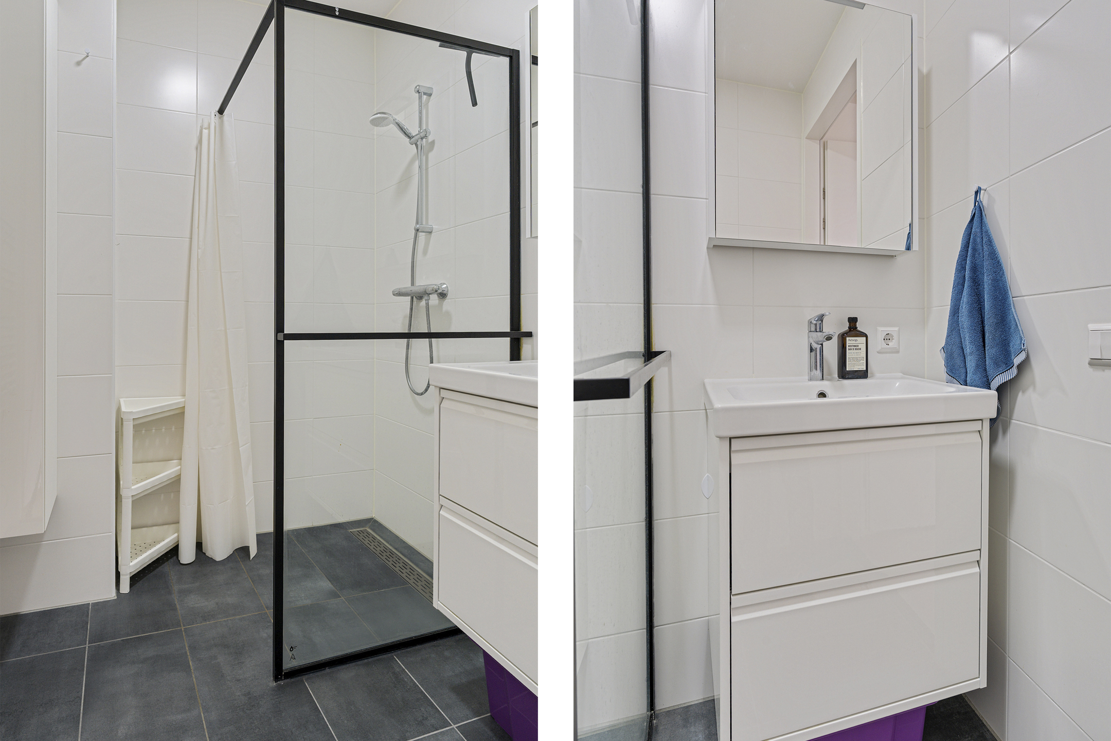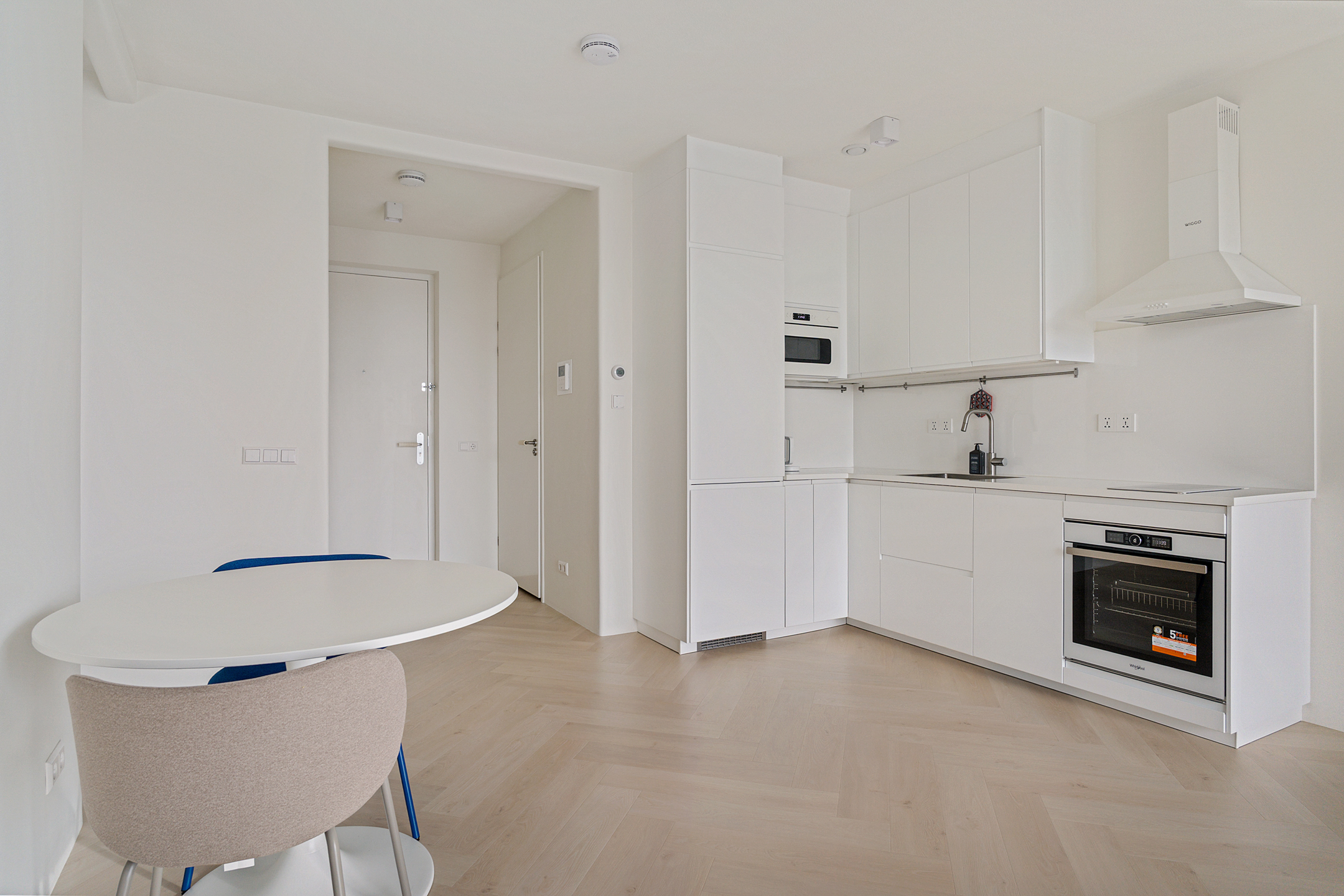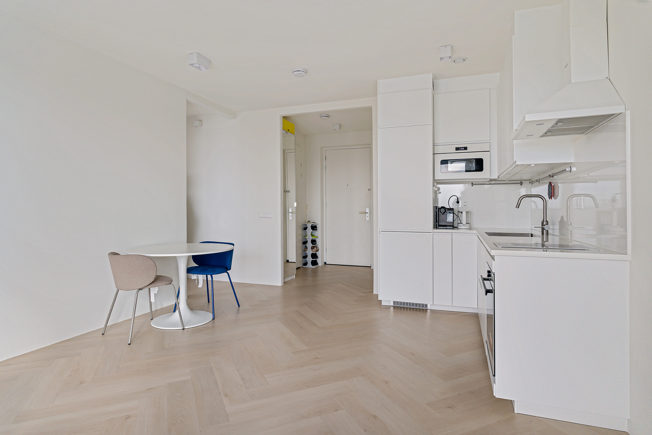 Bij binnenkomst in de verzorgde hal heb je direct toegang tot alle vertrekken. De woonkamer is licht en ruim, met grote ramen en een prettige indeling. De open keuken sluit hier naadloos op aan en is voorzien van een inductiekookplaat, losse oven en magnetron, en biedt voldoende kastruimte voor al je kookbenodigdheden. Vanuit de woonkamer stap je het balkon op; een fijne plek om even buiten te zitten.