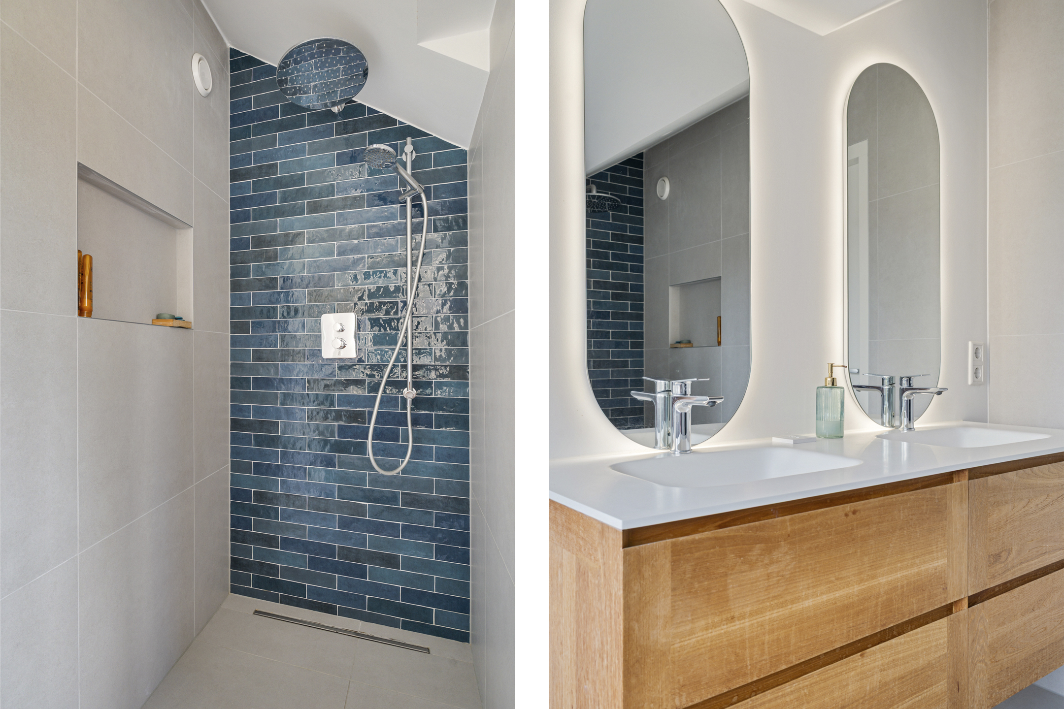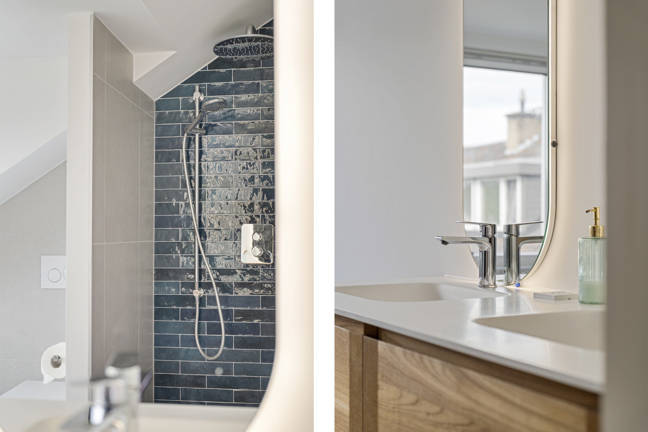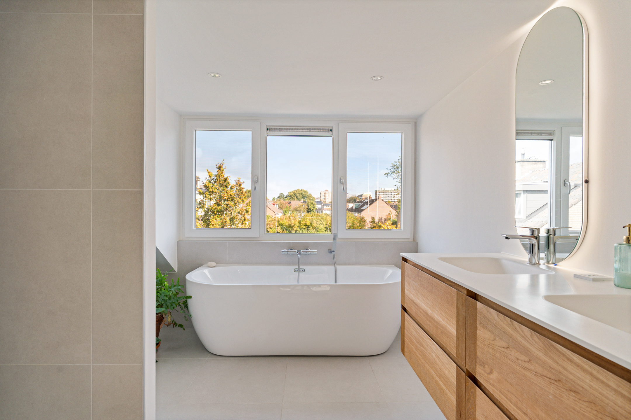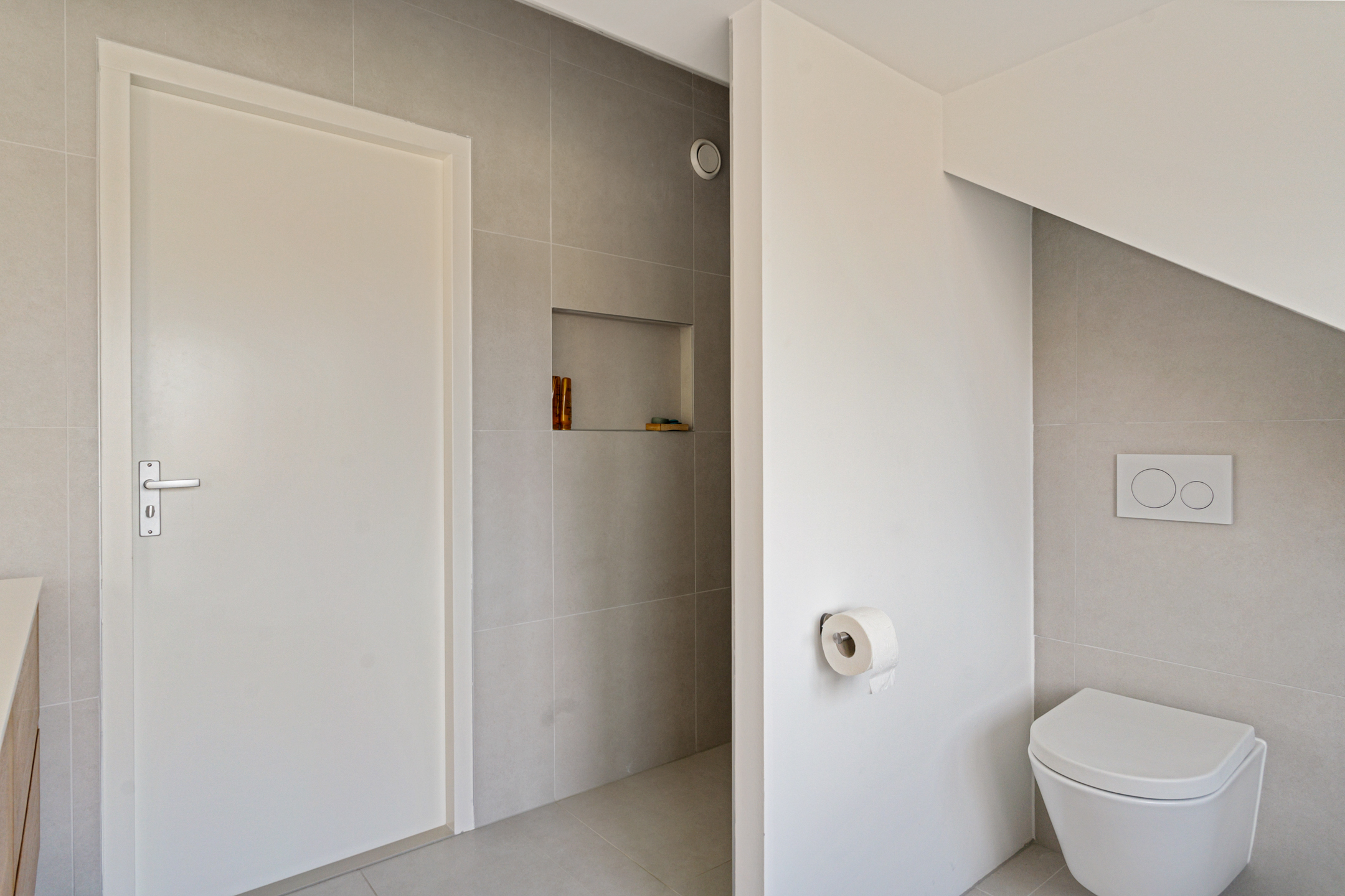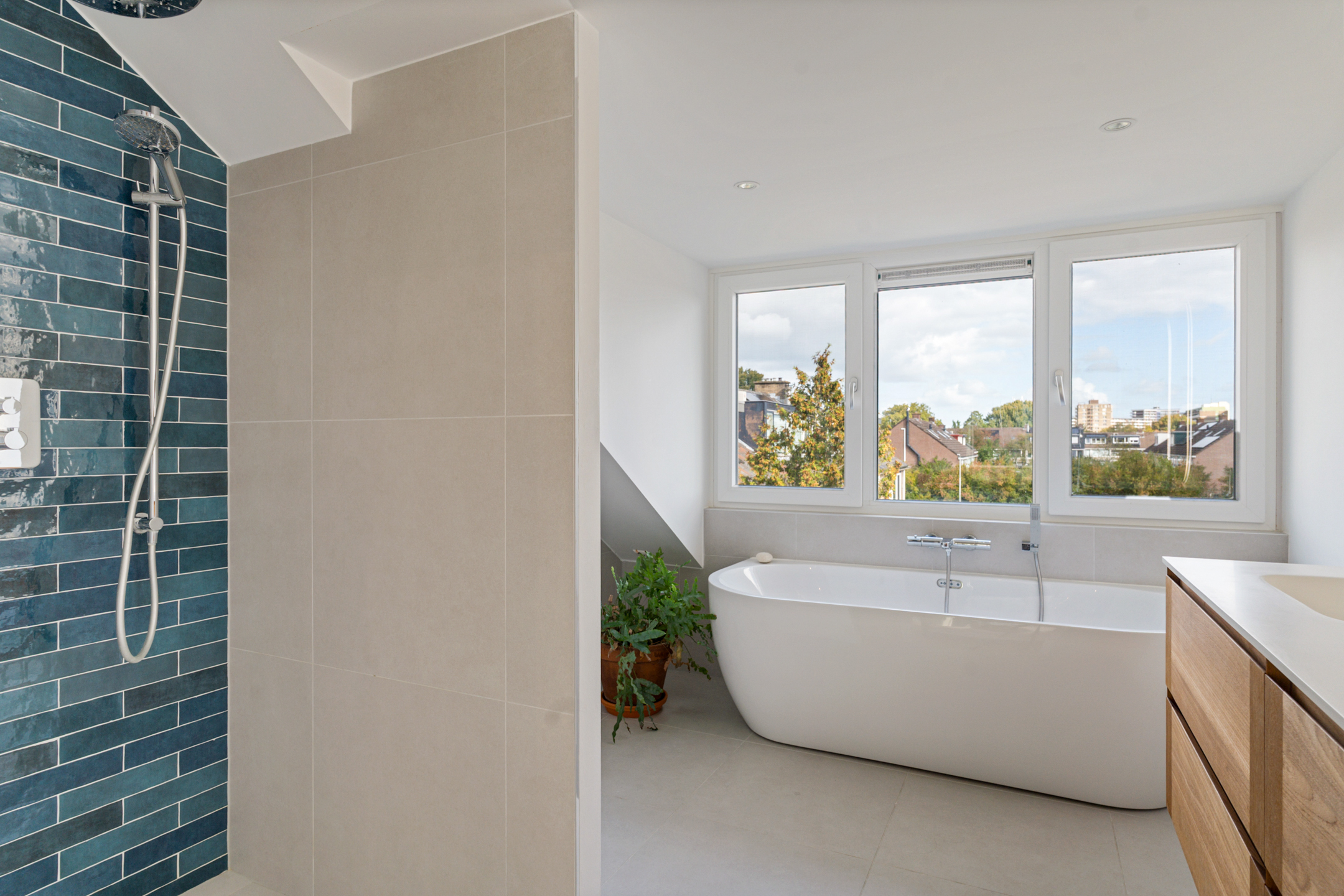 De tweede badkamer is zeer luxe afgewerkt en voorzien van een inloopdouche, ligbad, wastafelmeubel en tweede wandcloset. Ook hier is vloerverwarming aanwezig. Verder is er op deze verdieping een handige berging met opstelplaats voor de CV-ketel (Vaillant), MV-unit én de aansluiting voor wasmachine en droger.