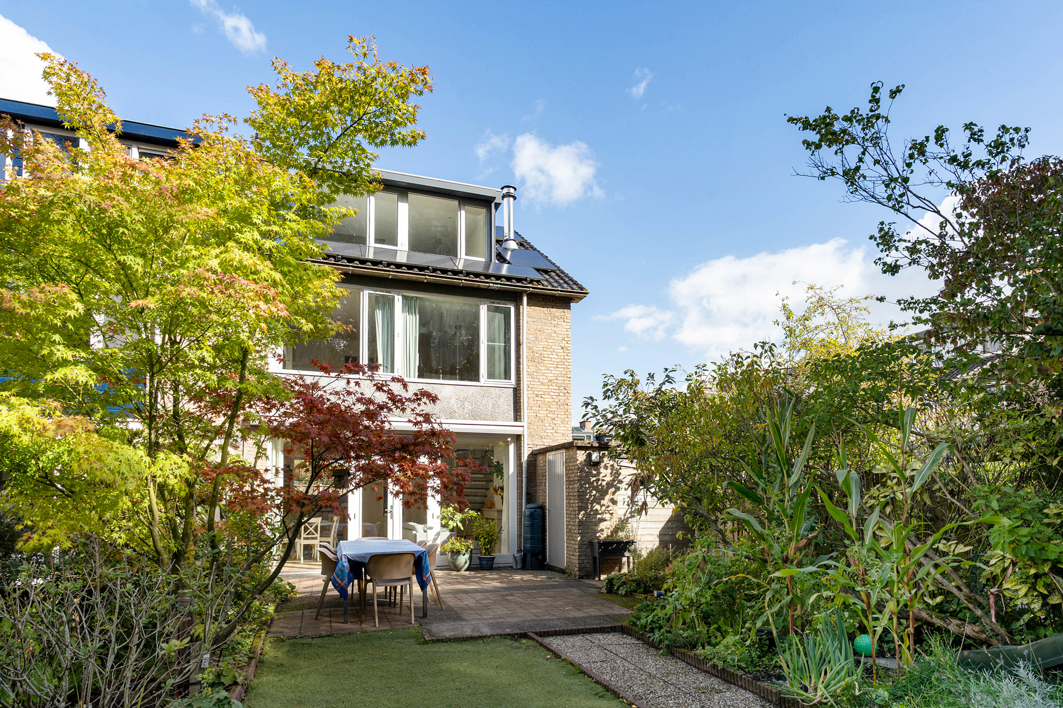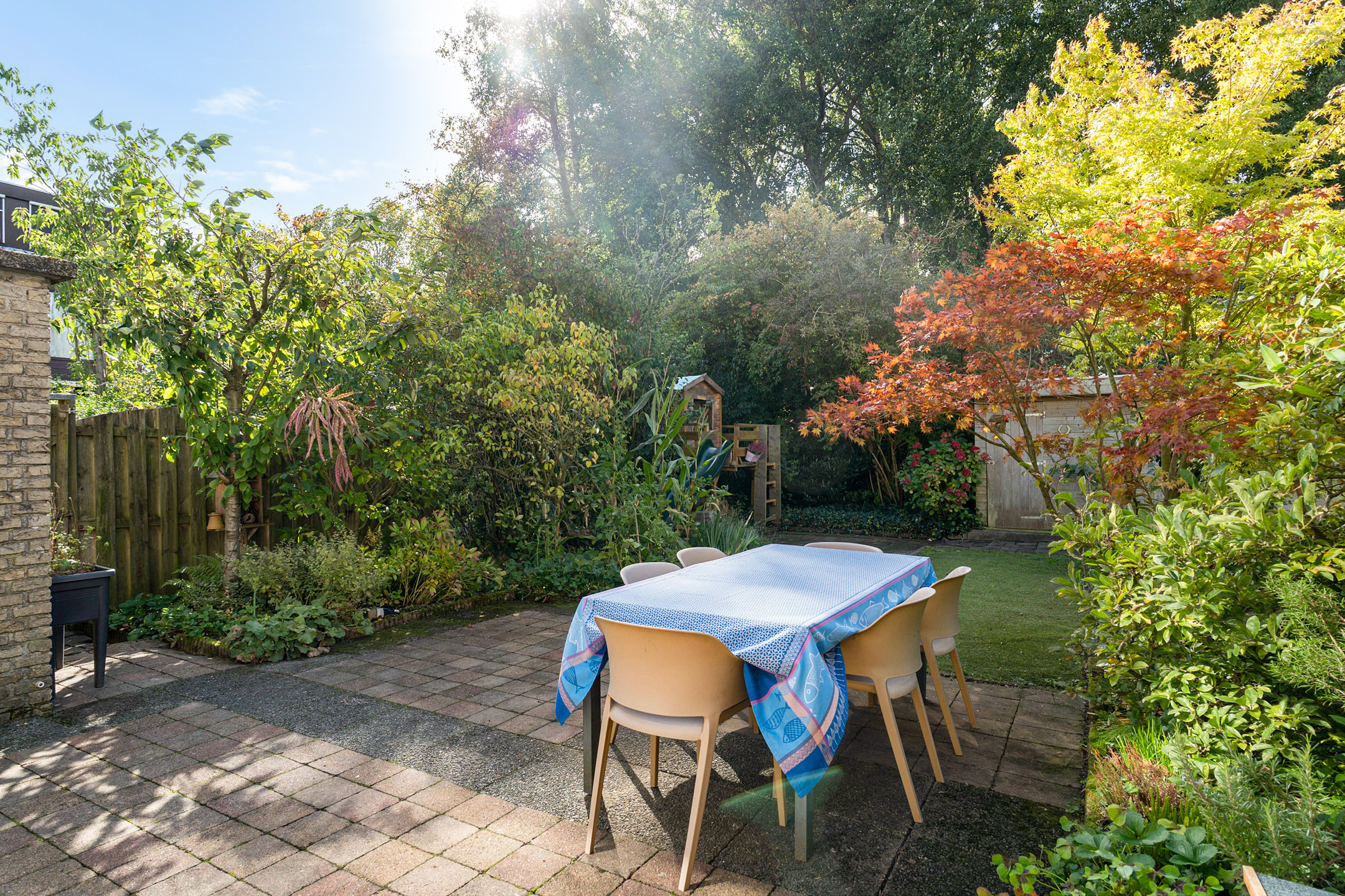 Via openslaande deuren stap je de zonnige, fraai aangelegde tuin in op het zuiden, met een berging en directe ligging aan het Westerpark. Een heerlijke plek waar je geniet van rust, zon en groen.
