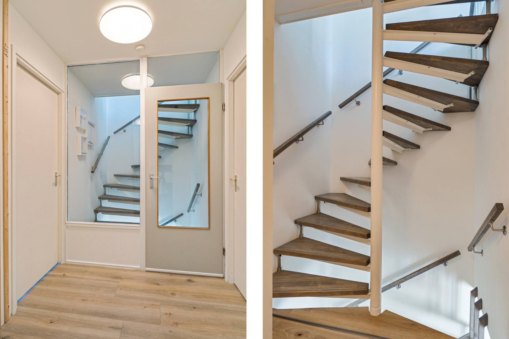 De open trap in de woonkamer leidt naar de eerste verdieping.