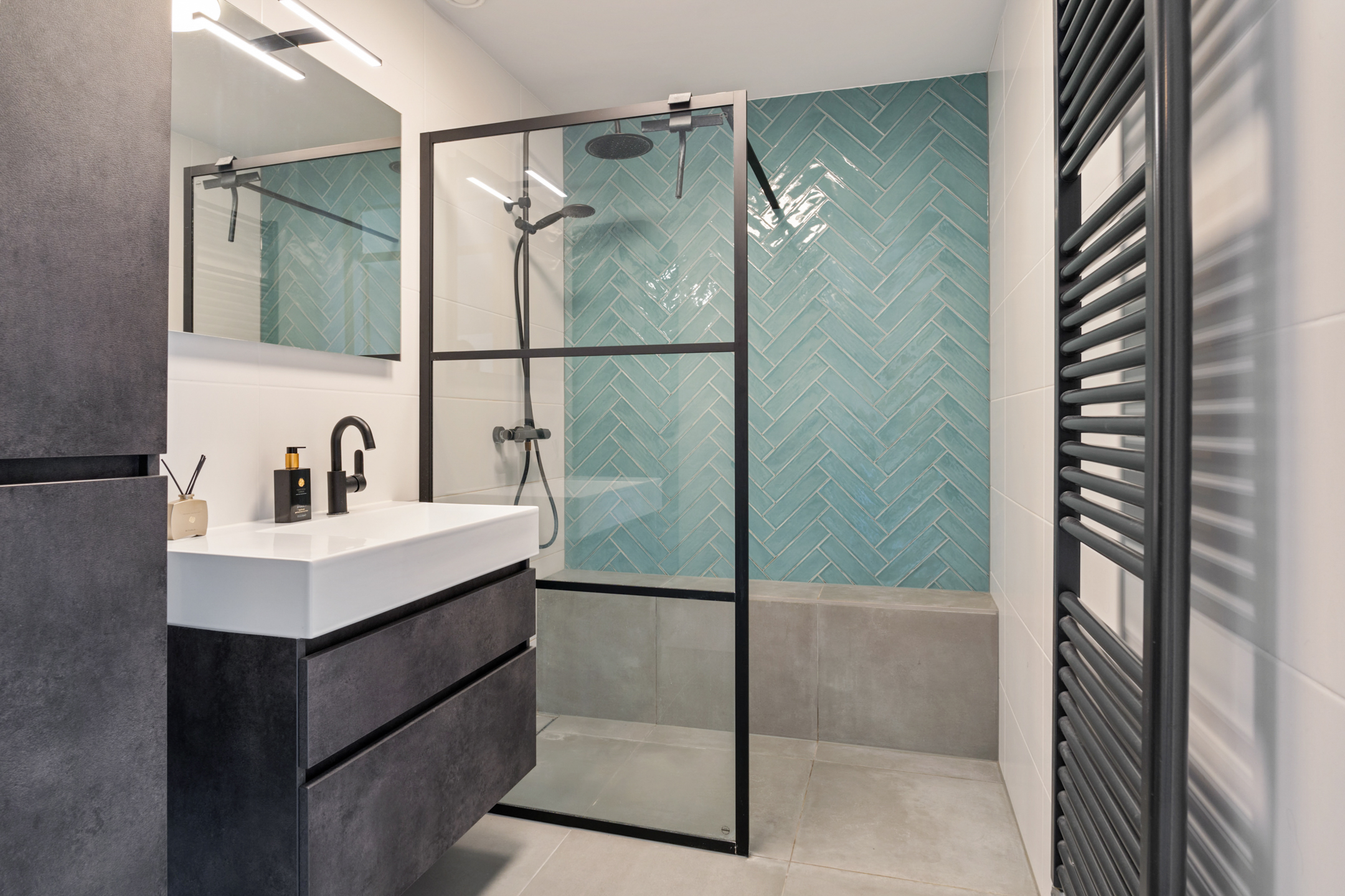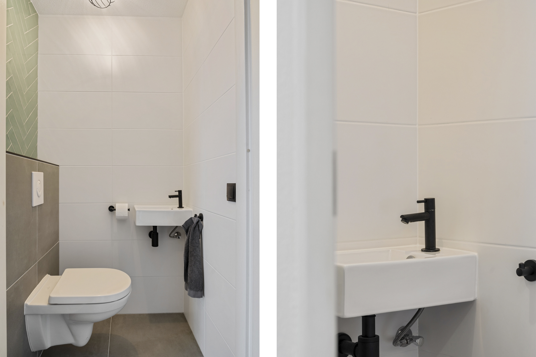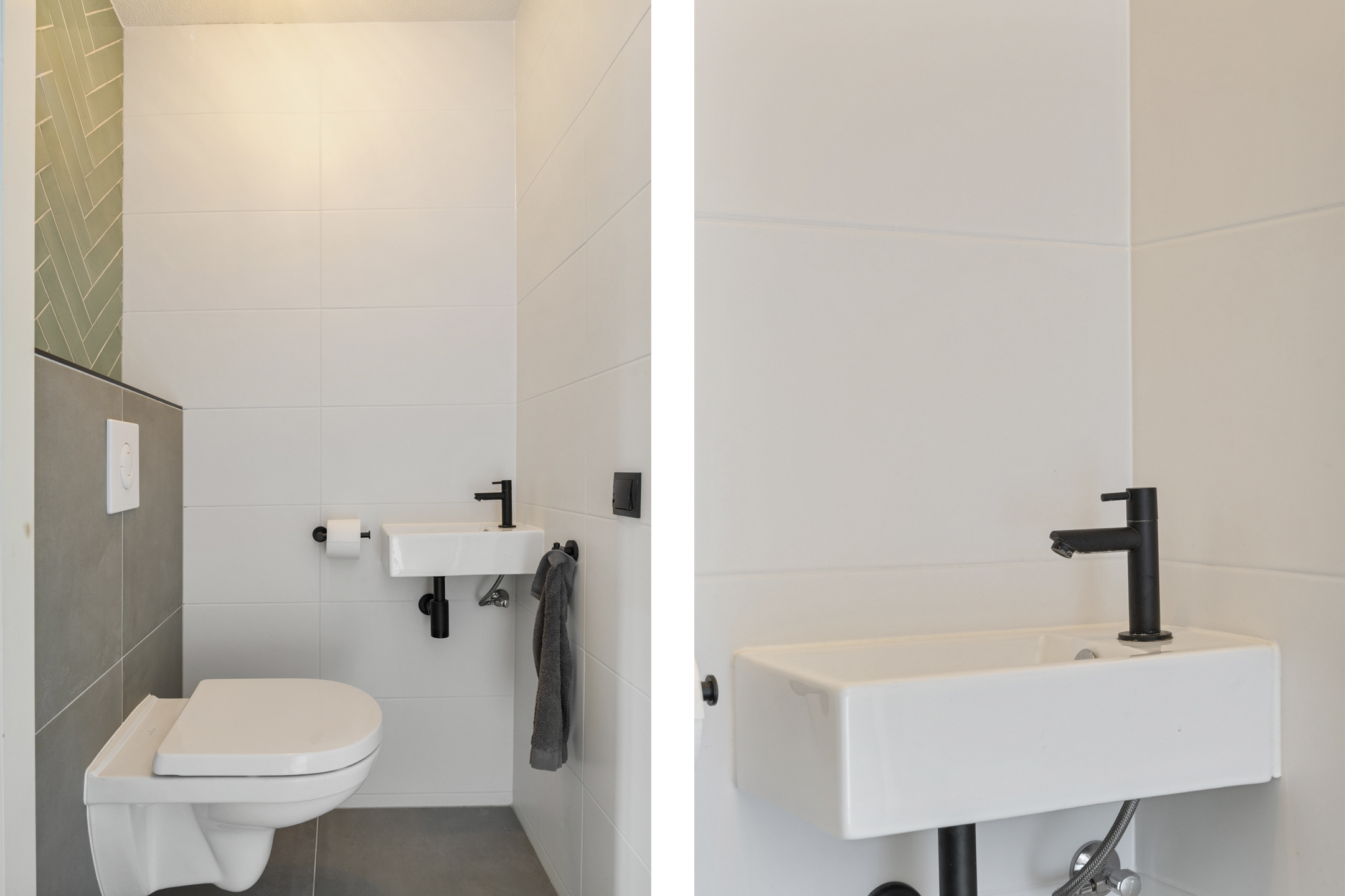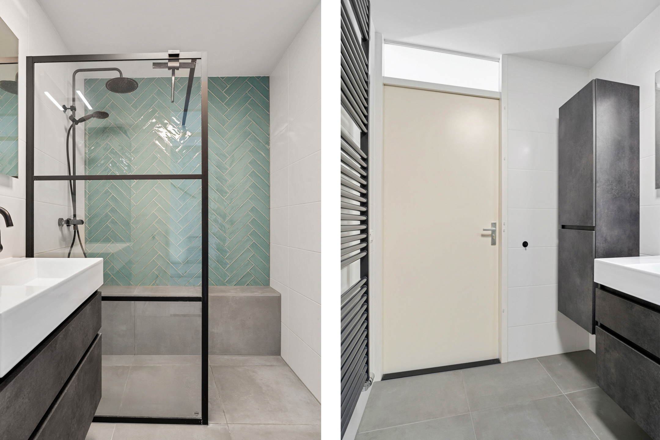 De badkamer is volledig betegeld en stijlvol ingericht met een inloopdouche met regendouche én handdouche, een modern wastafelmeubel en handdoekradiator. Tevens bevindt zich op deze verdieping een tweede separaat toilet. Ook dit toilet is in 2024 vernieuwd in dezelfde luxe stijl als de badkamer, wat zorgt voor een mooi geheel.