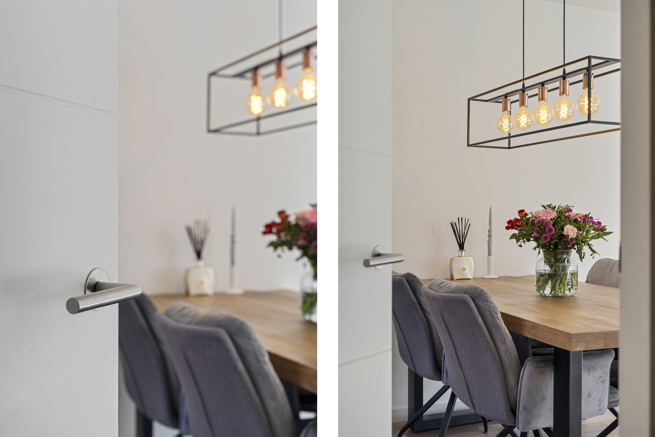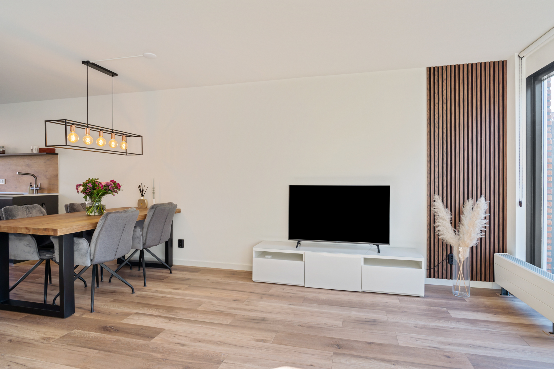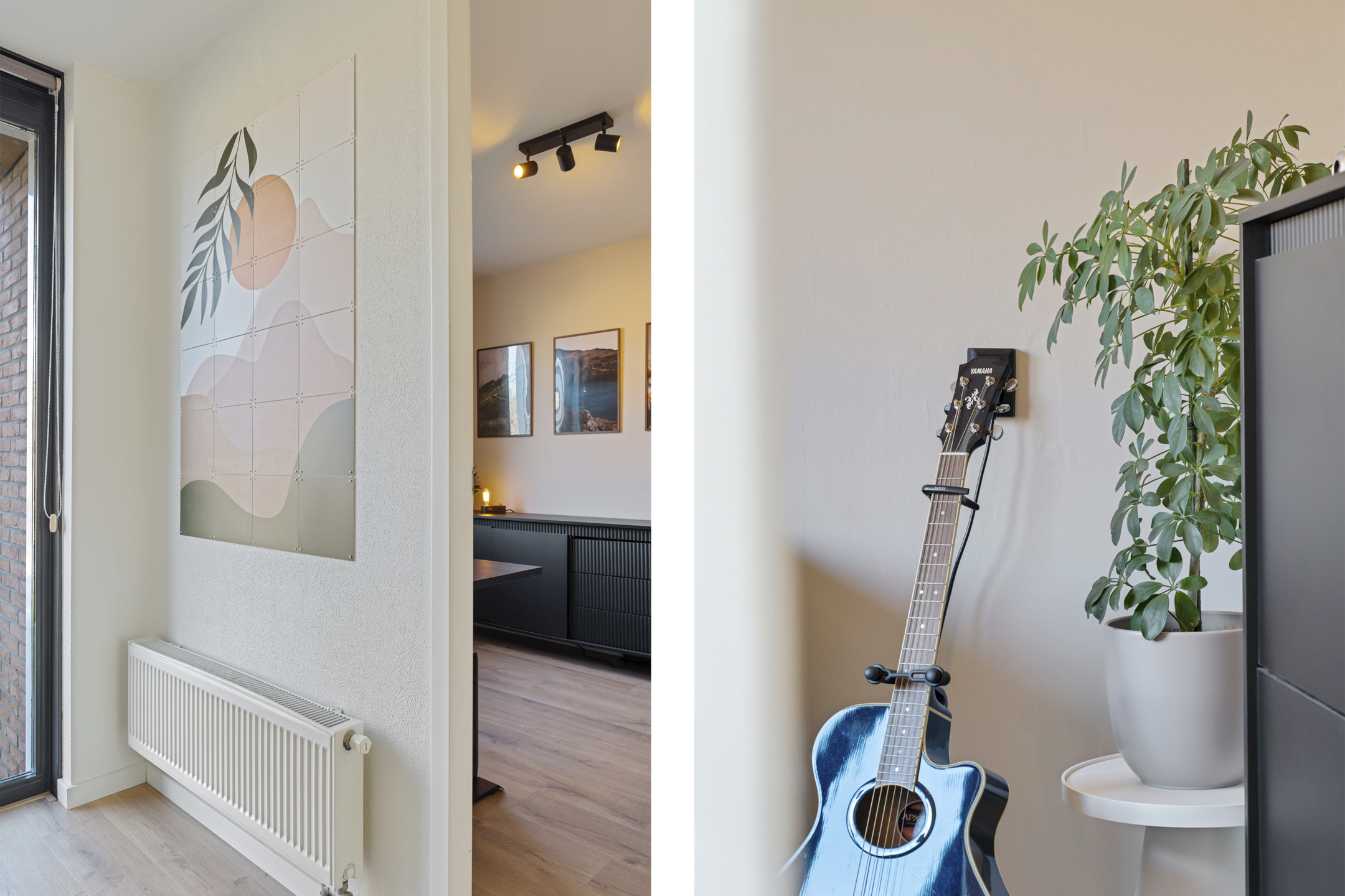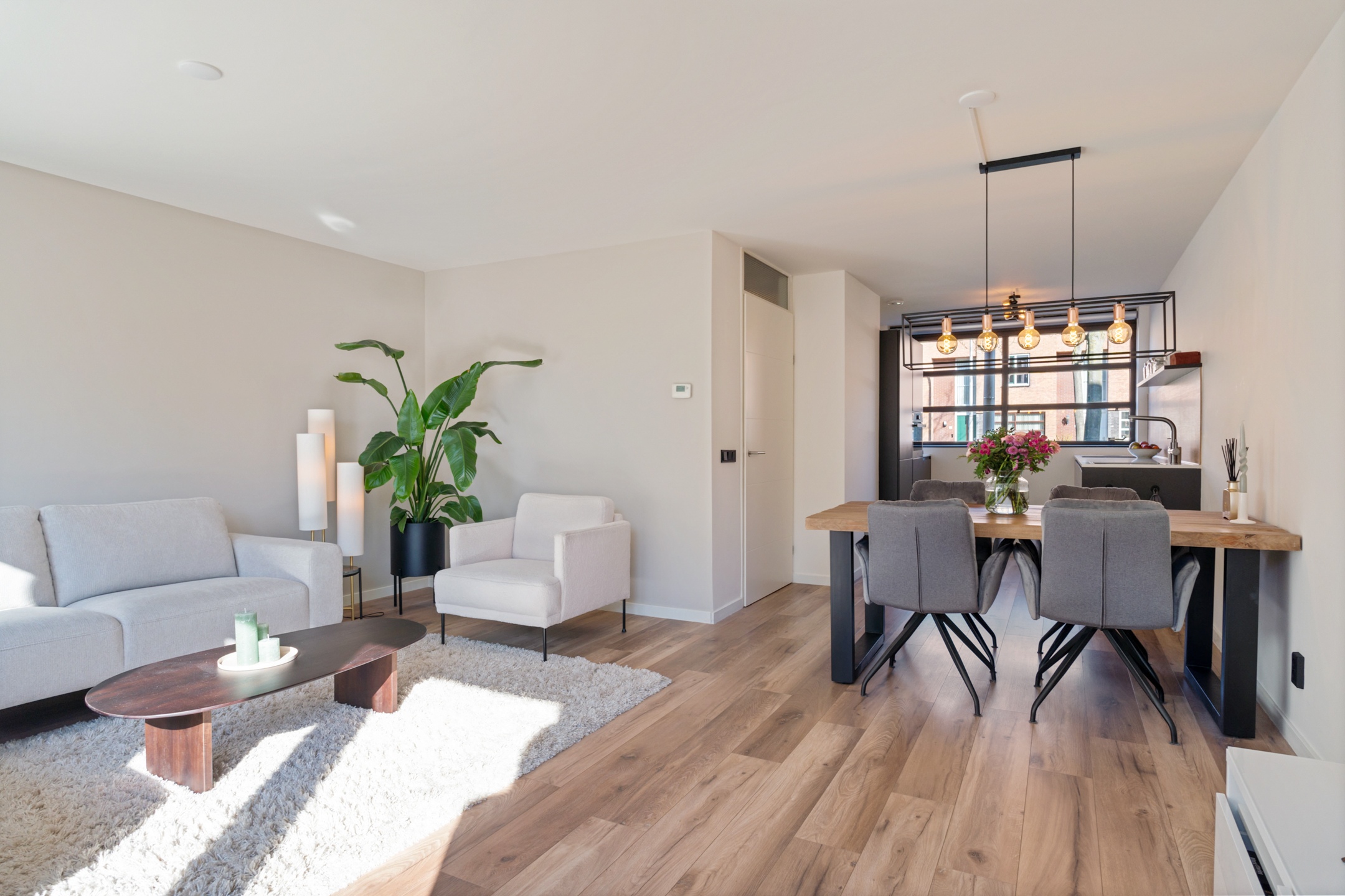 Je komt binnen in een ruime hal met toegang tot de vernieuwde meterkast (8 groepen met aardlekschakelaar), een modern toilet met fonteintje gerenoveerd in 2024 en een handige trapkast. De woonkamer is licht en ruim, met grote ramen en een fijne indeling. Aan de achterzijde vind je de open keuken uit 2020: strak, modern en compleet.