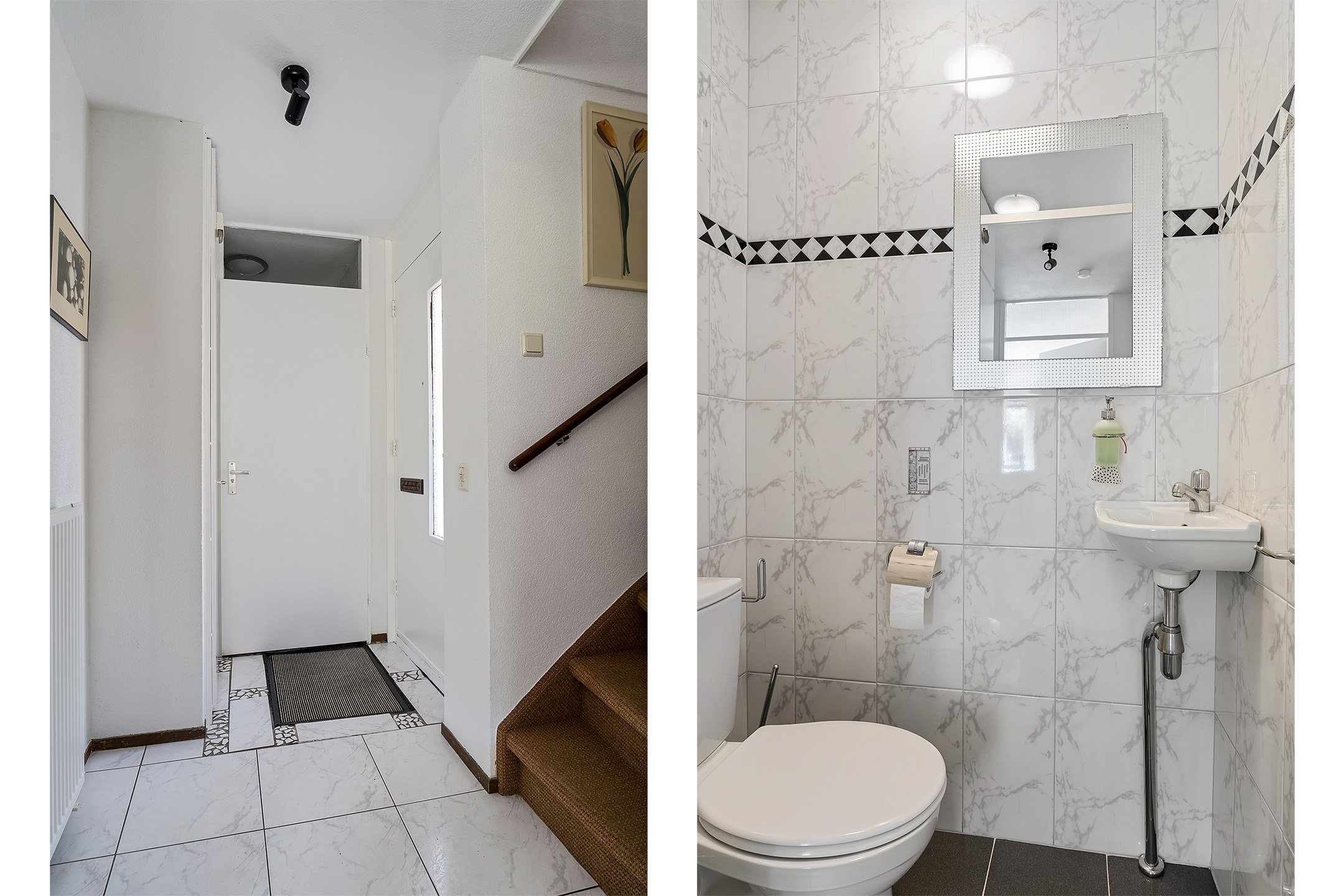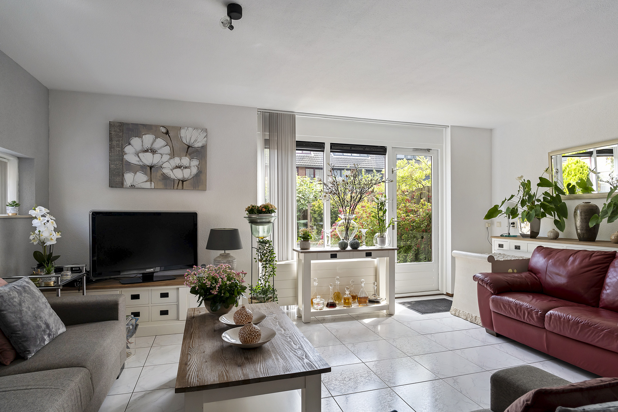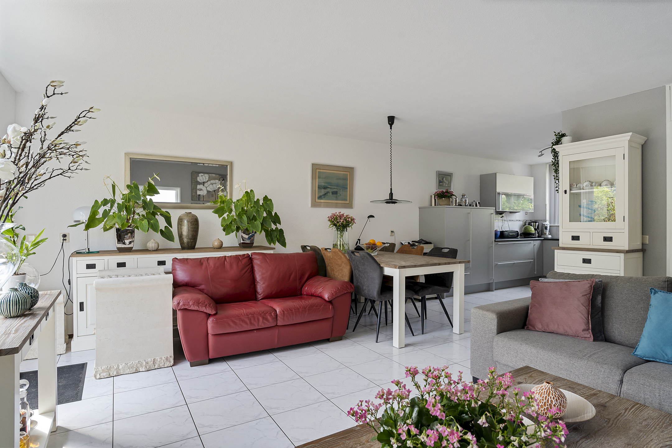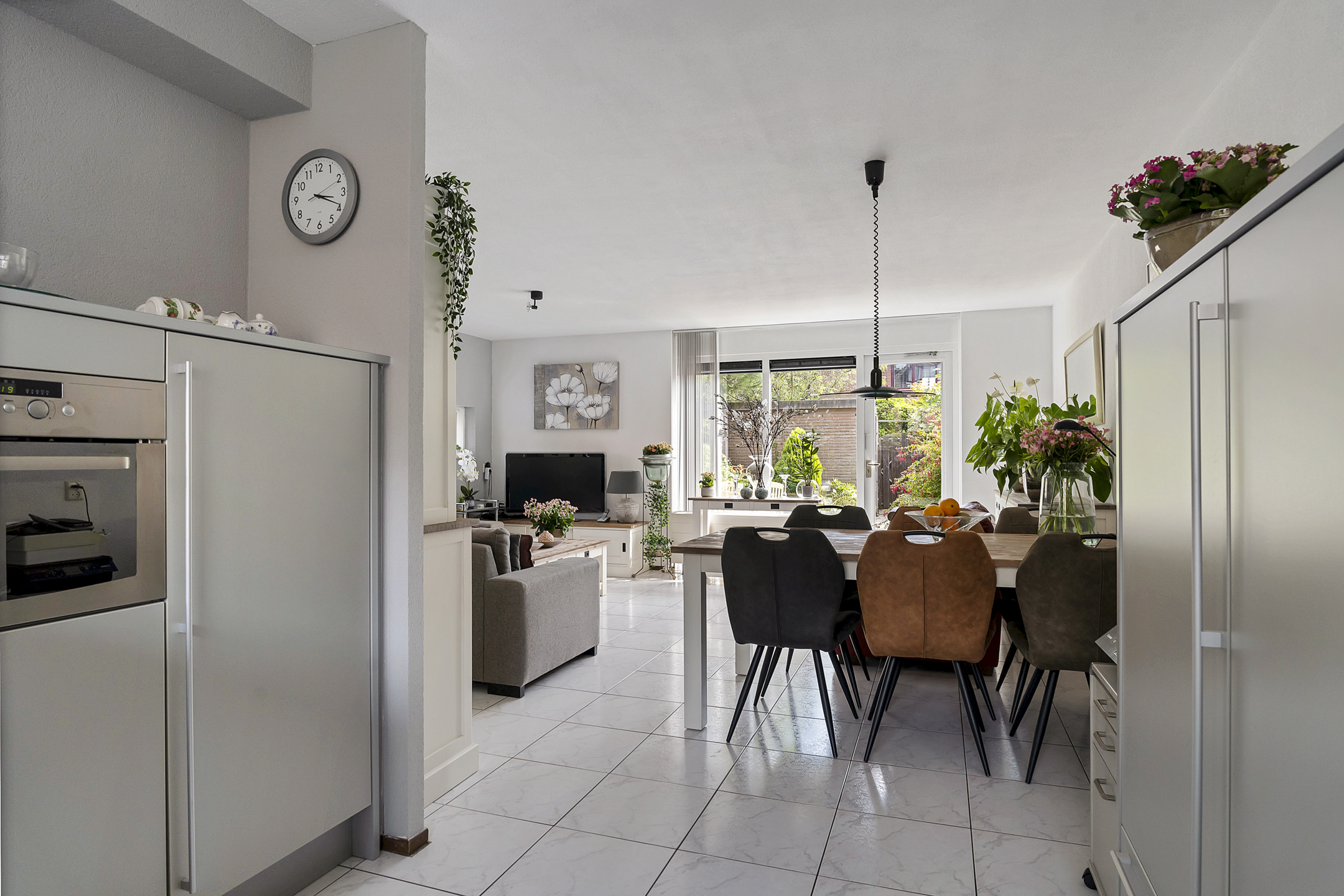 Je komt binnen via de zijkant van de woning. Hier vind je meteen een hal met toegang tot het toilet, de meterkast en de trap naar de eerste verdieping. De woonkamer is heerlijk licht dankzij een raam aan de zijkant en een achterpui die toegang biedt tot de achtertuin. De tegelvloer met vloerverwarming zorgt voor extra comfort. Aan de voorzijde tref je de open keuken in een praktische U-opstelling, compleet met diverse inbouwapparatuur.