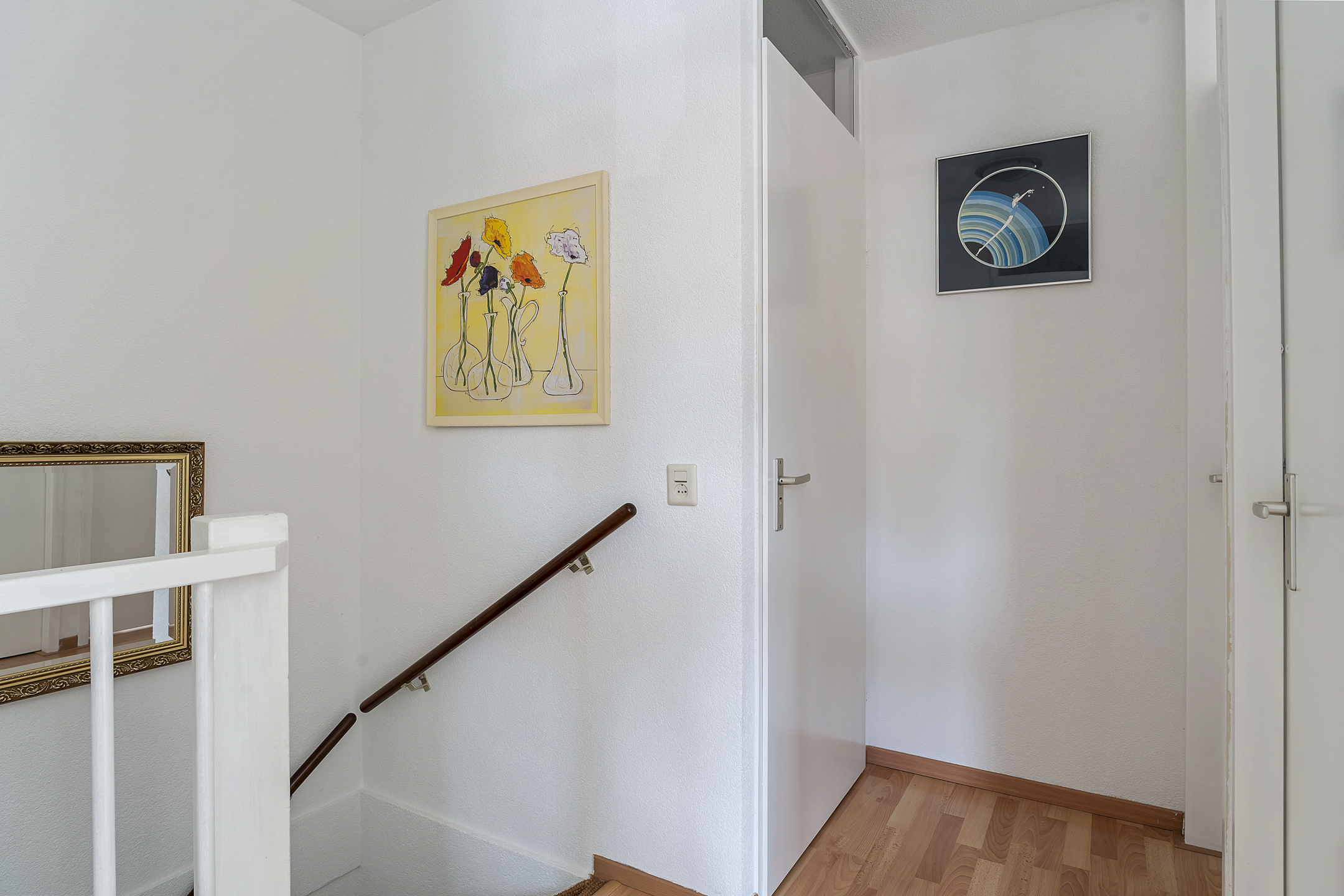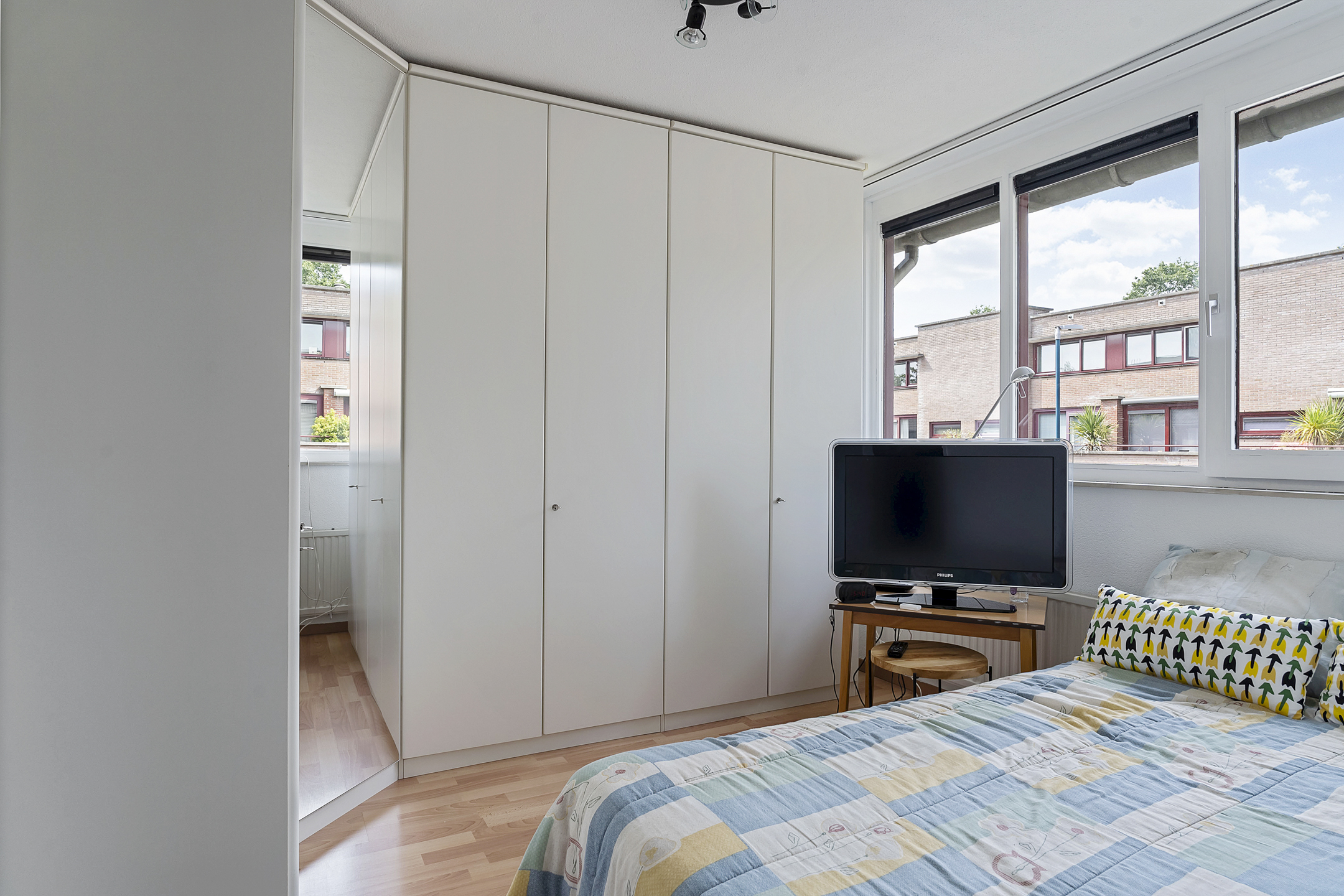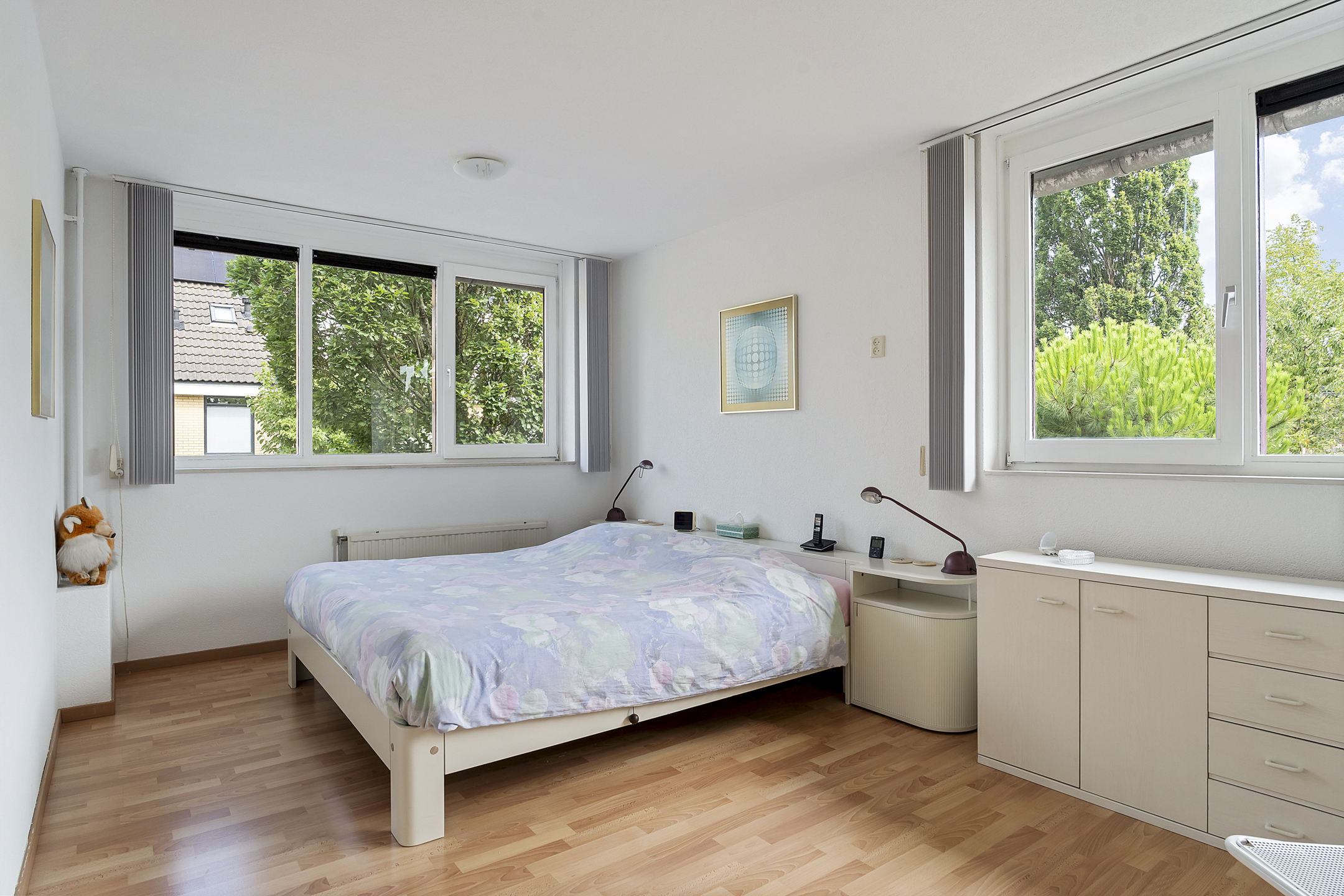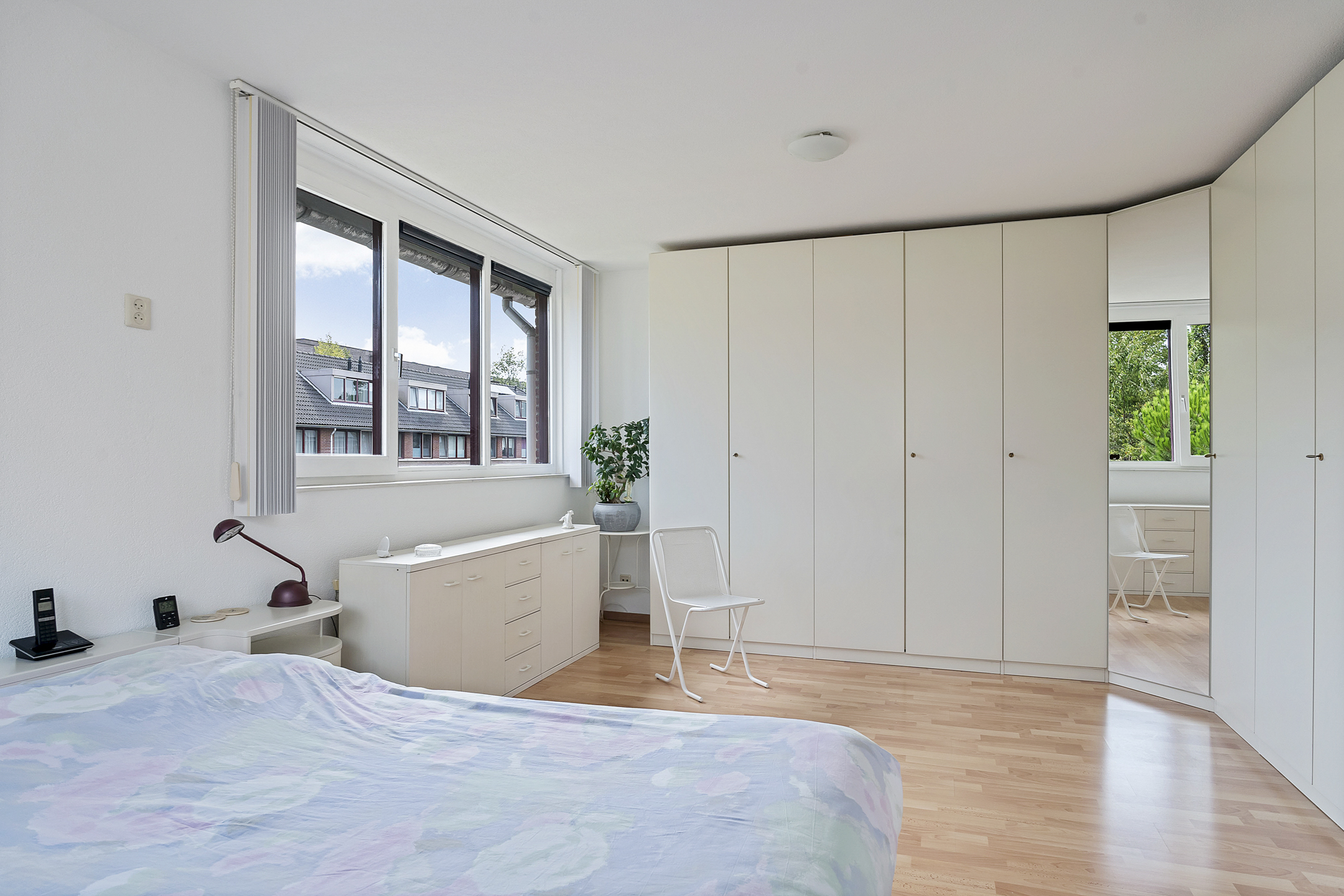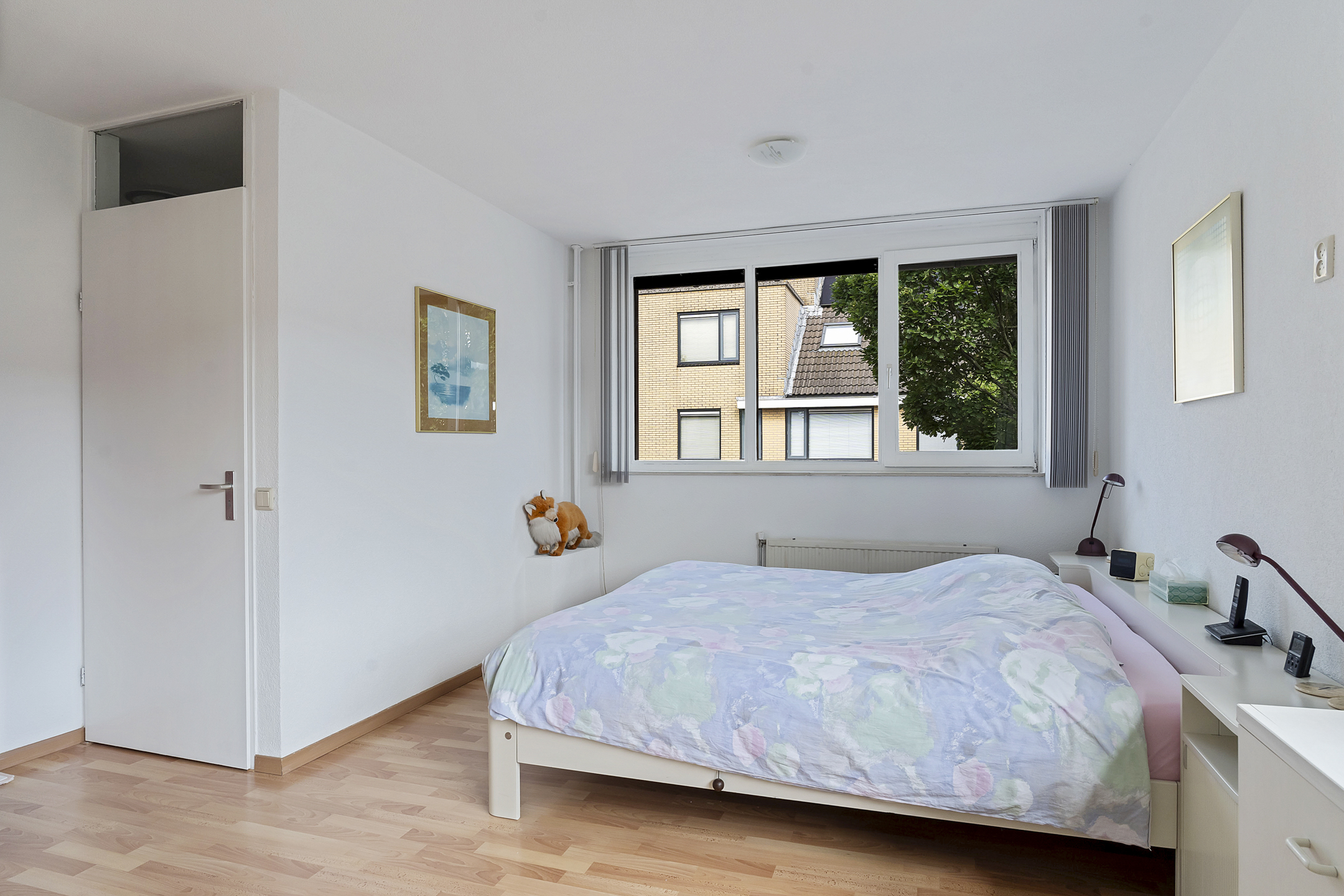De overloop geeft toegang tot de hal en de trap naar de tweede verdieping. Aan de voorzijde bevindt zich een slaapkamer. Aan de achterzijde vind je een royale slaapkamer, ontstaan door het samenvoegen van twee kamers. Hier kun je eenvoudig weer een extra slaapkamer creëren als dat nodig is.