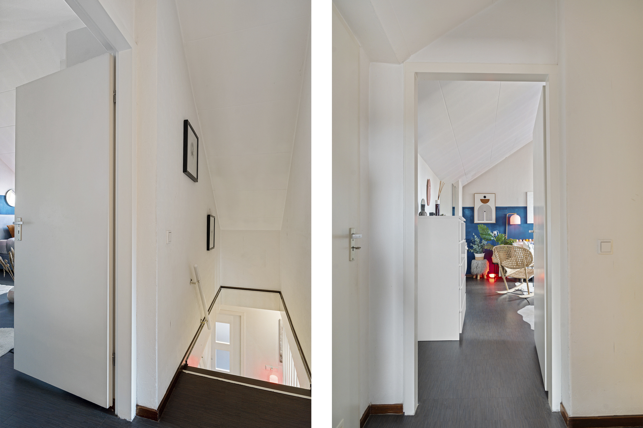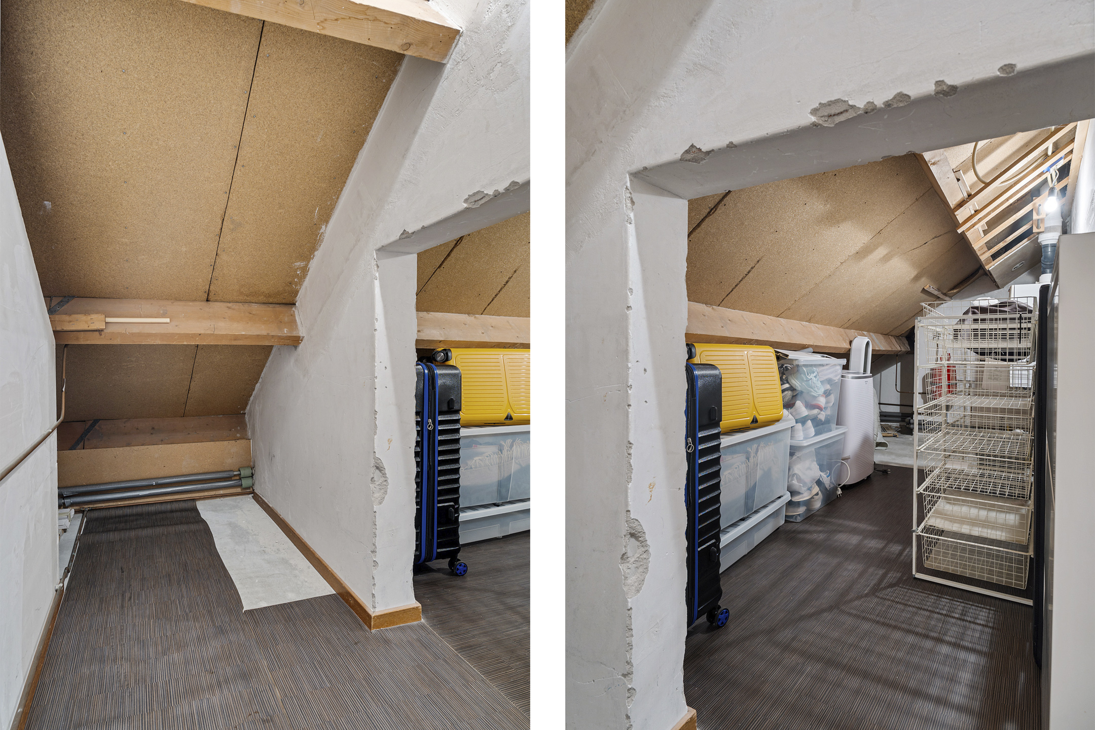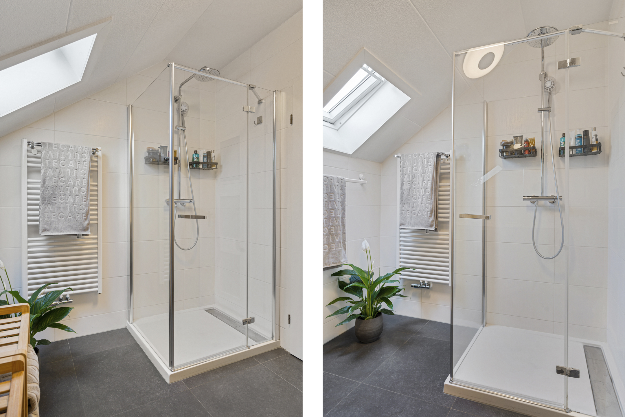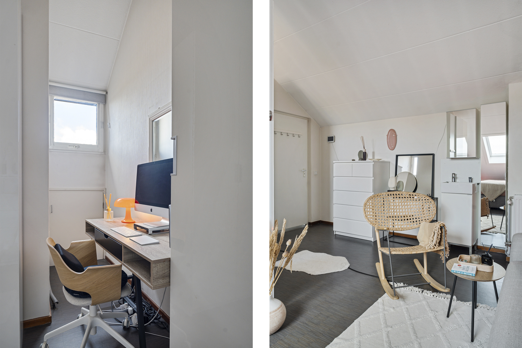 Via de overloop bereik je twee royale slaapkamers, elk met vaste kasten en een eigen wastafelmeubel. Ook vind je hier een grote bergruimte en de opstelplaats van de cv-installatie (Remeha, 2016, eigendom). Dankzij de ligging op de bovenste verdieping geniet je van maximale rust en geen bovenburen.