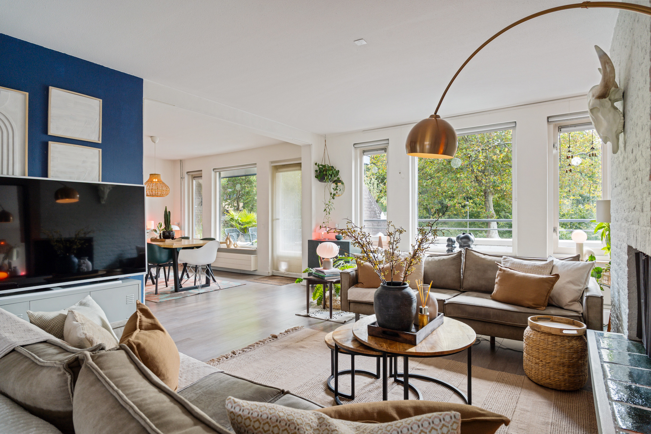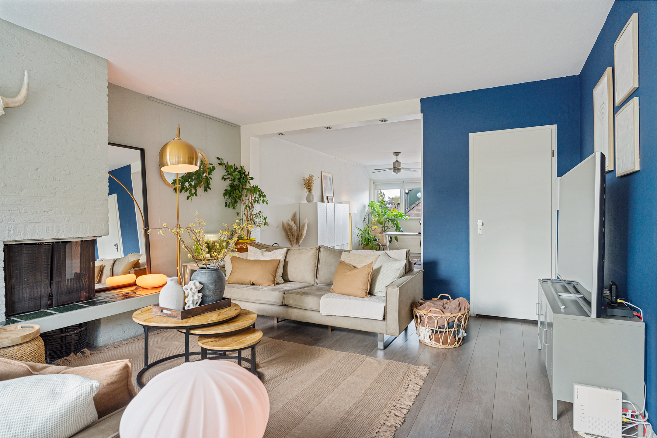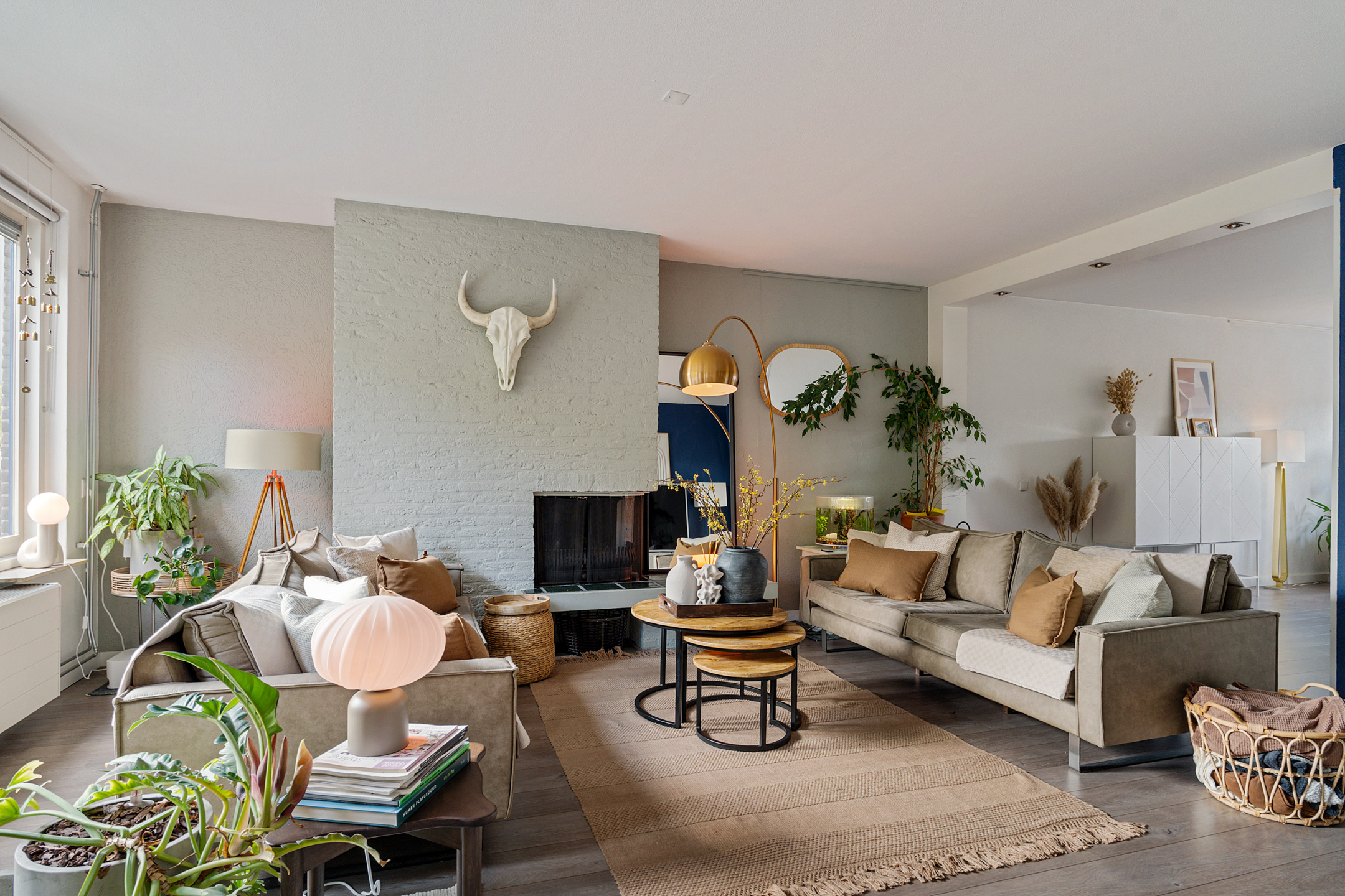 Bij binnenkomst kom je in de hal met meterkast en toegang tot de woonkamer, keuken, badkamer, toilet en wasruimte. De ruime L-vormige woonkamer heeft veel lichtinval, een sfeervolle open haard, koof met LED-verlichting en directe toegang tot het zonnige terras. Het terras van 14 m² biedt volop privacy en een vrij uitzicht over de omgeving — een heerlijke plek om te ontspannen.