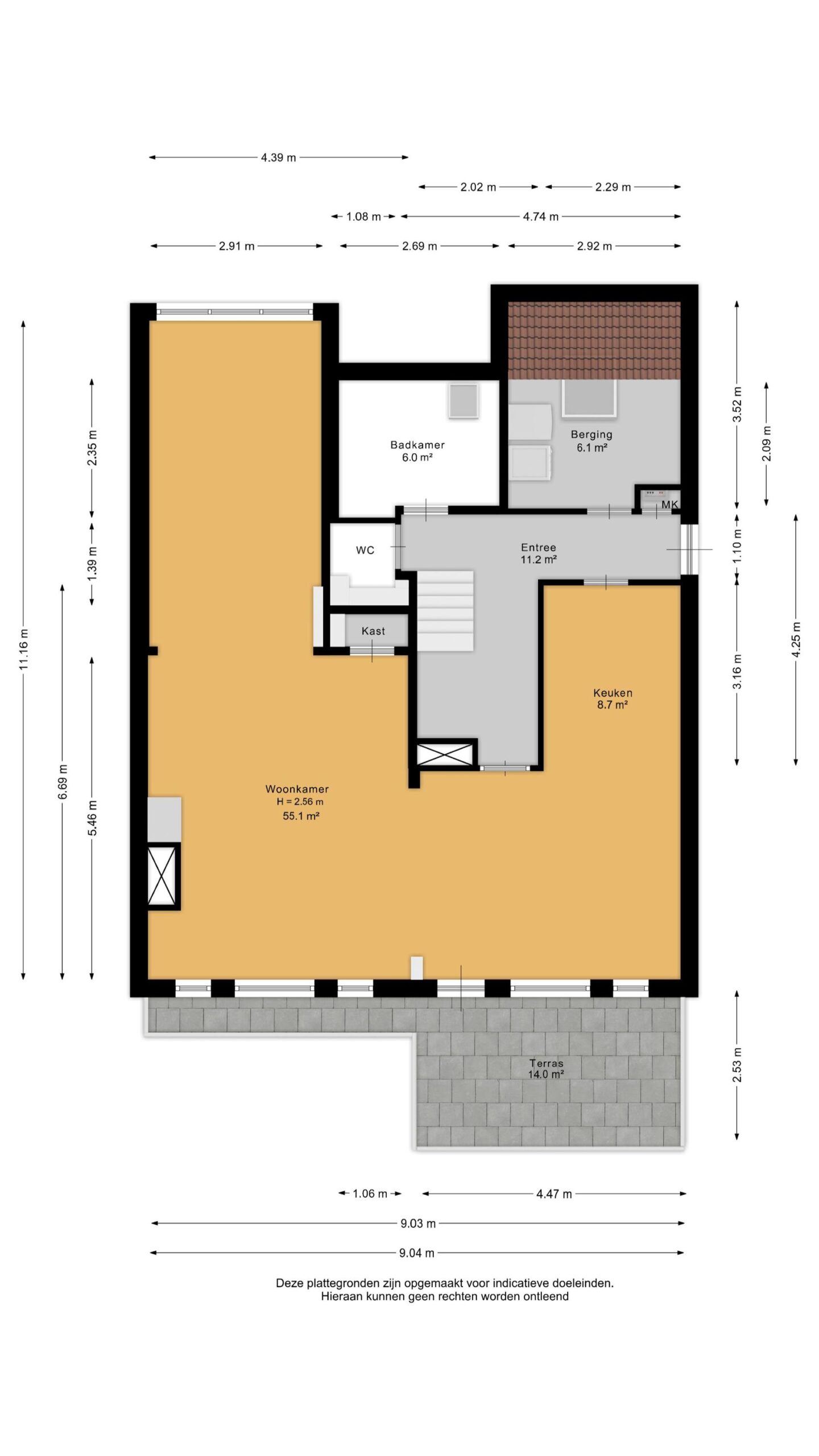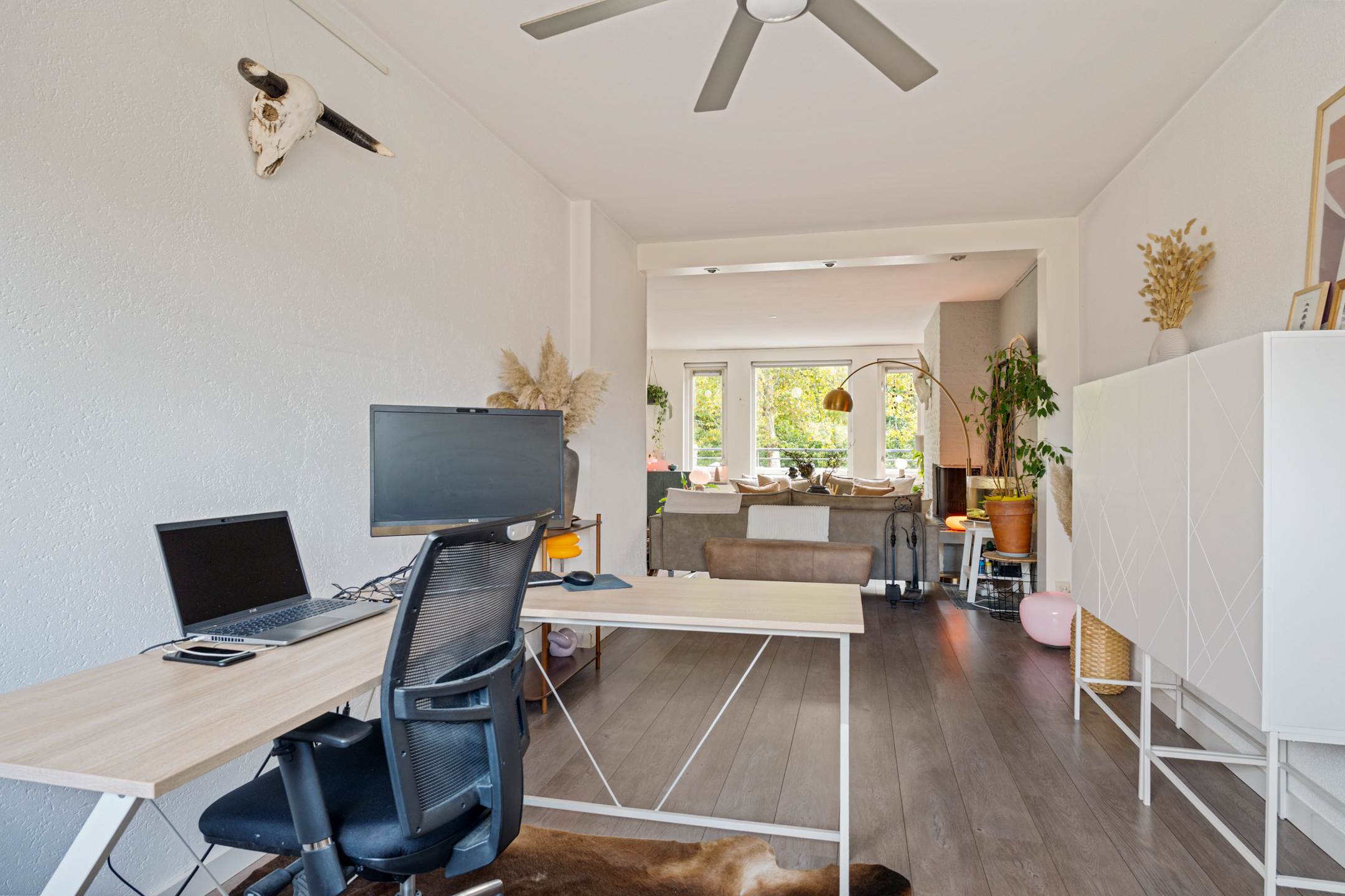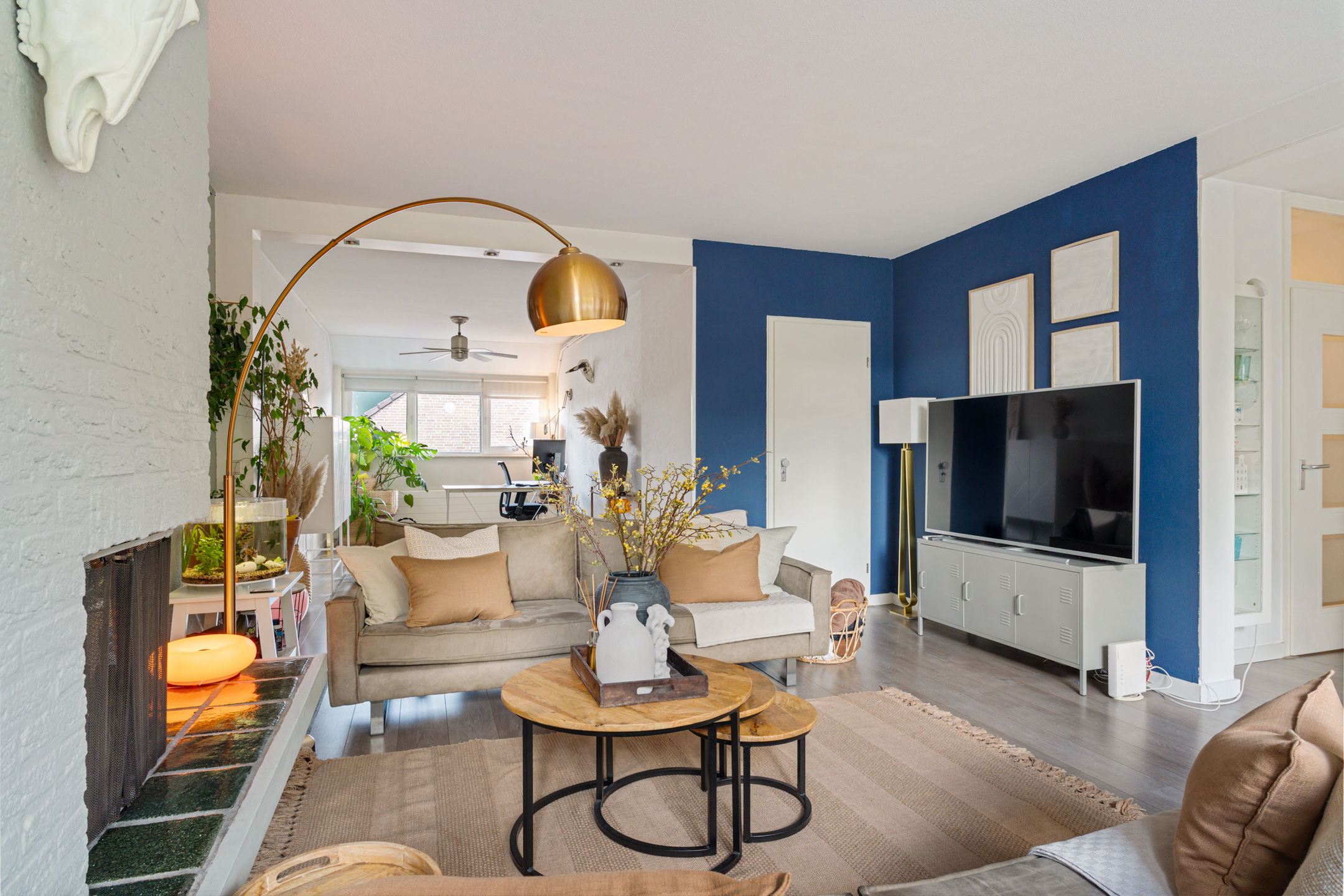 Bij binnenkomst kom je in de hal met meterkast en toegang tot de woonkamer, keuken, badkamer, toilet en wasruimte. De ruime L-vormige woonkamer heeft veel lichtinval, een sfeervolle open haard, koof met LED-verlichting en directe toegang tot het zonnige terras. Het terras van 14 m² biedt volop privacy en een vrij uitzicht over de omgeving — een heerlijke plek om te ontspannen.
