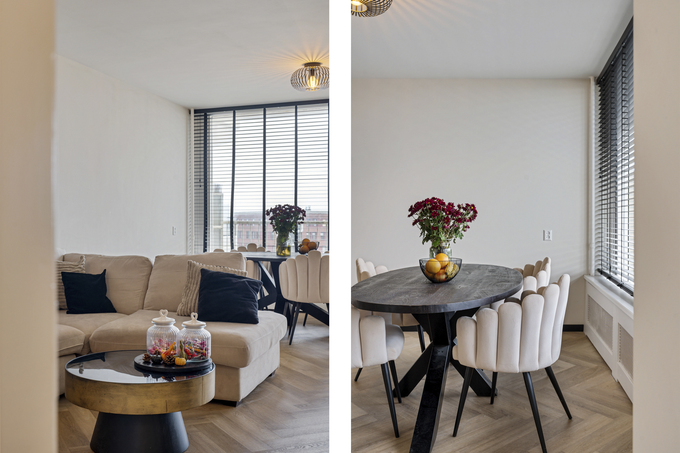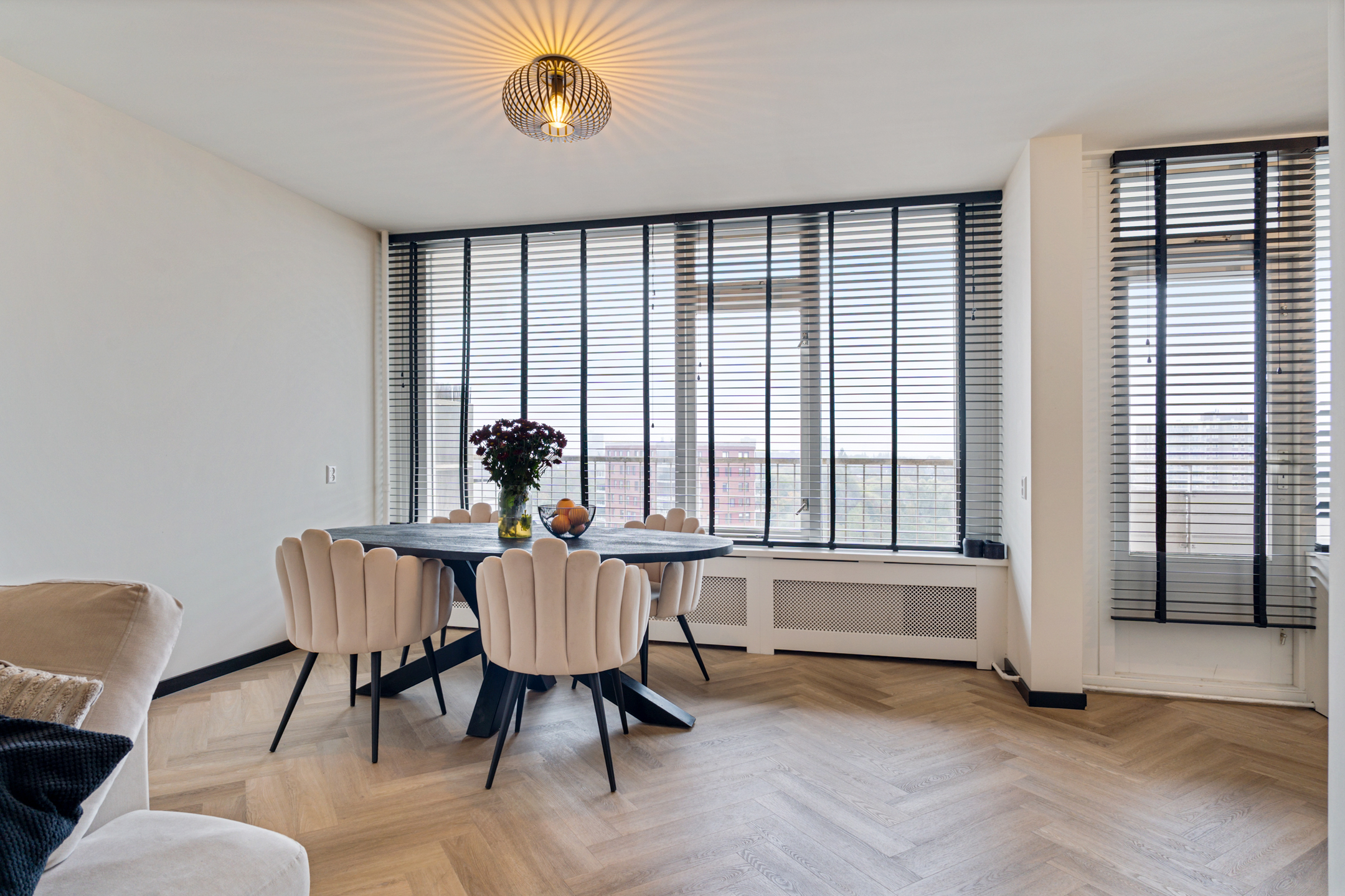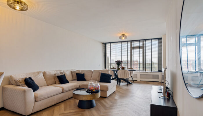 Op de tiende verdieping (negende woonlaag) van een keurig onderhouden appartementencomplex vind je dit volledig gerenoveerde en modern afgewerkte 2-kamerappartement. Dankzij de hoekligging geniet je van een prachtig, vrij uitzicht — met als kers op de taart de indrukwekkende skyline van Rotterdam. De combinatie van licht, ruimte en stijl maakt dit appartement een heerlijke plek om thuis te komen.