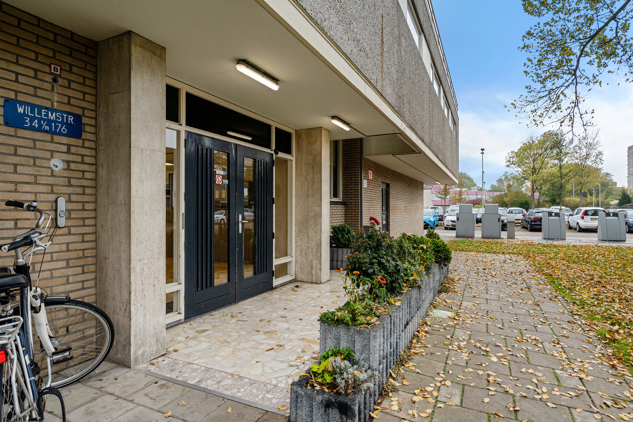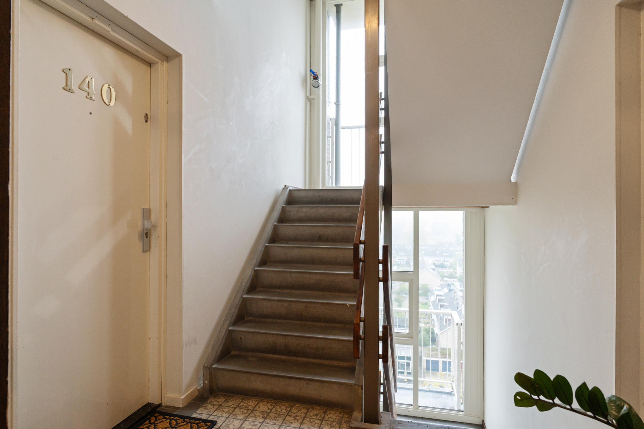 De centrale entree is verzorgd en voorzien van een bellenbord, brievenbussen en intercominstallatie. Op de eerste verdieping bevindt zich een eigen berging, gunstig gelegen in de uiterste hoek. Via de trap of een van de twee liften bereik je gemakkelijk het appartement op de tiende verdieping.