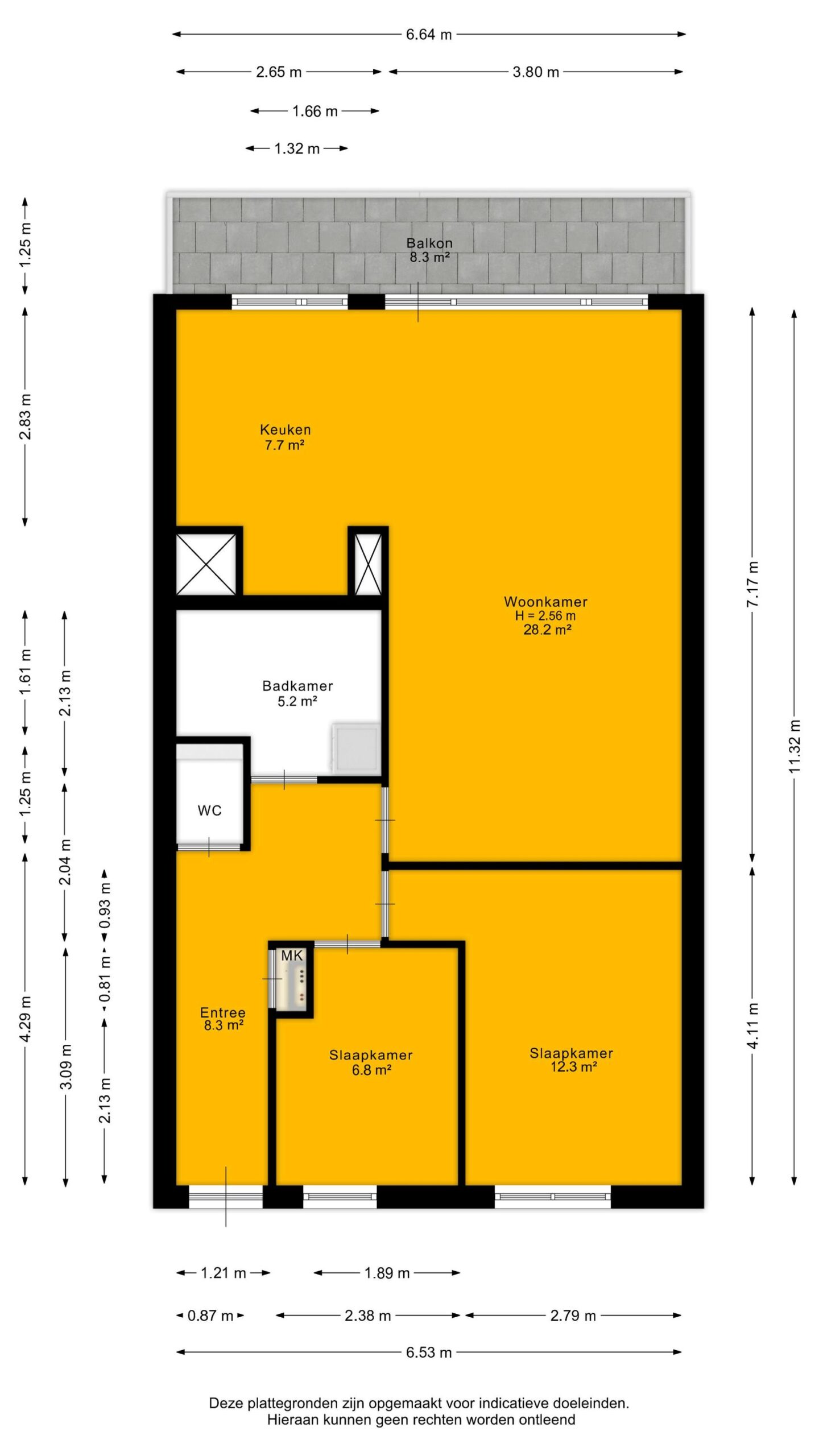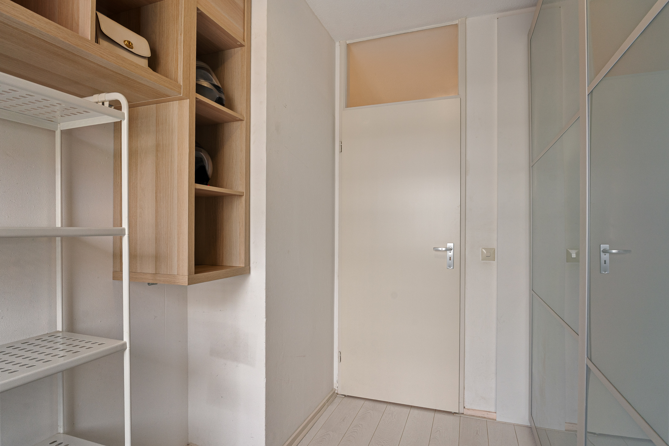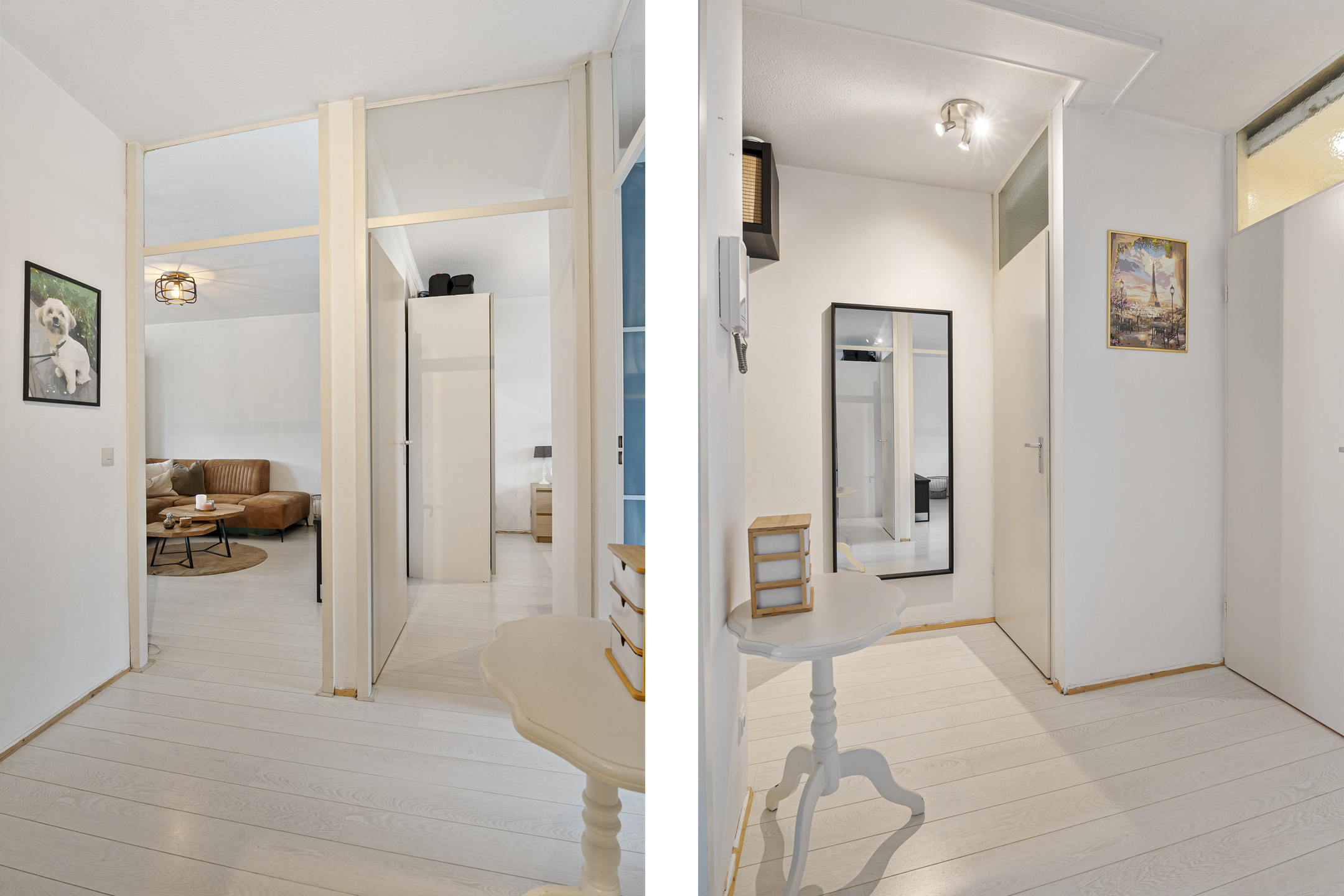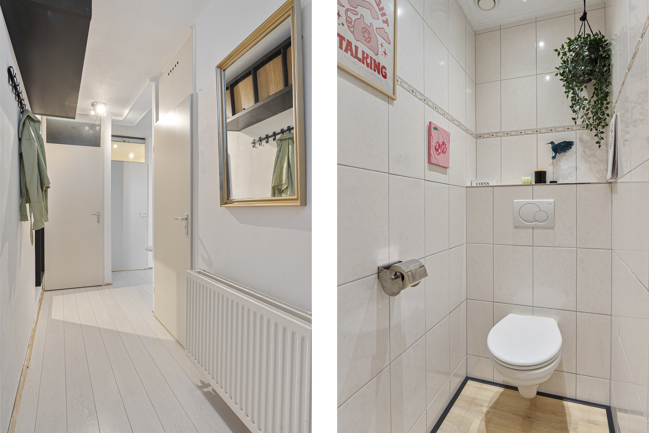 Via de galerij is de eigen voordeur bereikbaar. Via de diepe en ruime hal, die toegang geeft tot vrijwel alle vertrekken en voldoende ruimte biedt voor een kapstok, bereik je direct de meterkast en het separate toilet. Het separate toilet is volledig betegeld en uitgevoerd met een wandcloset.