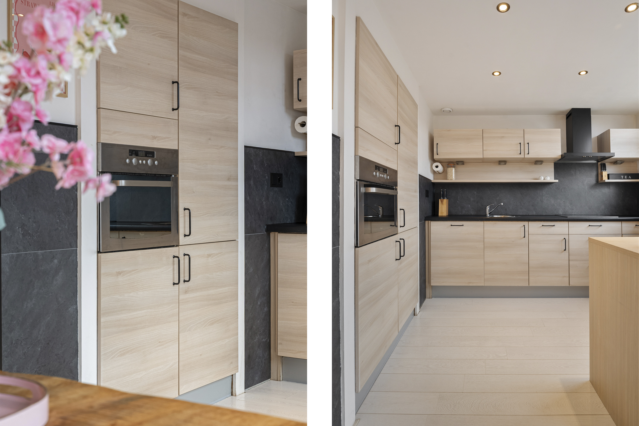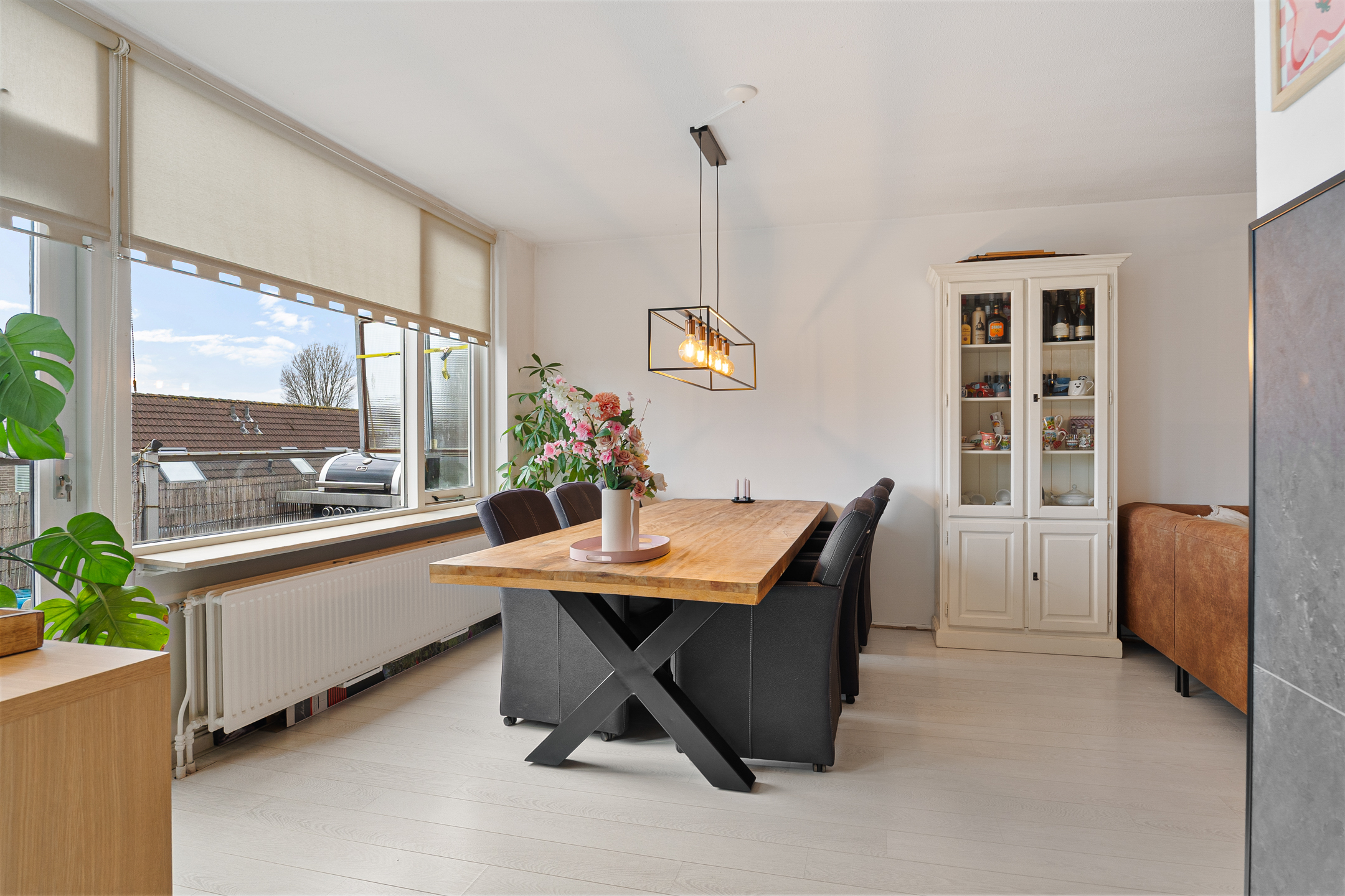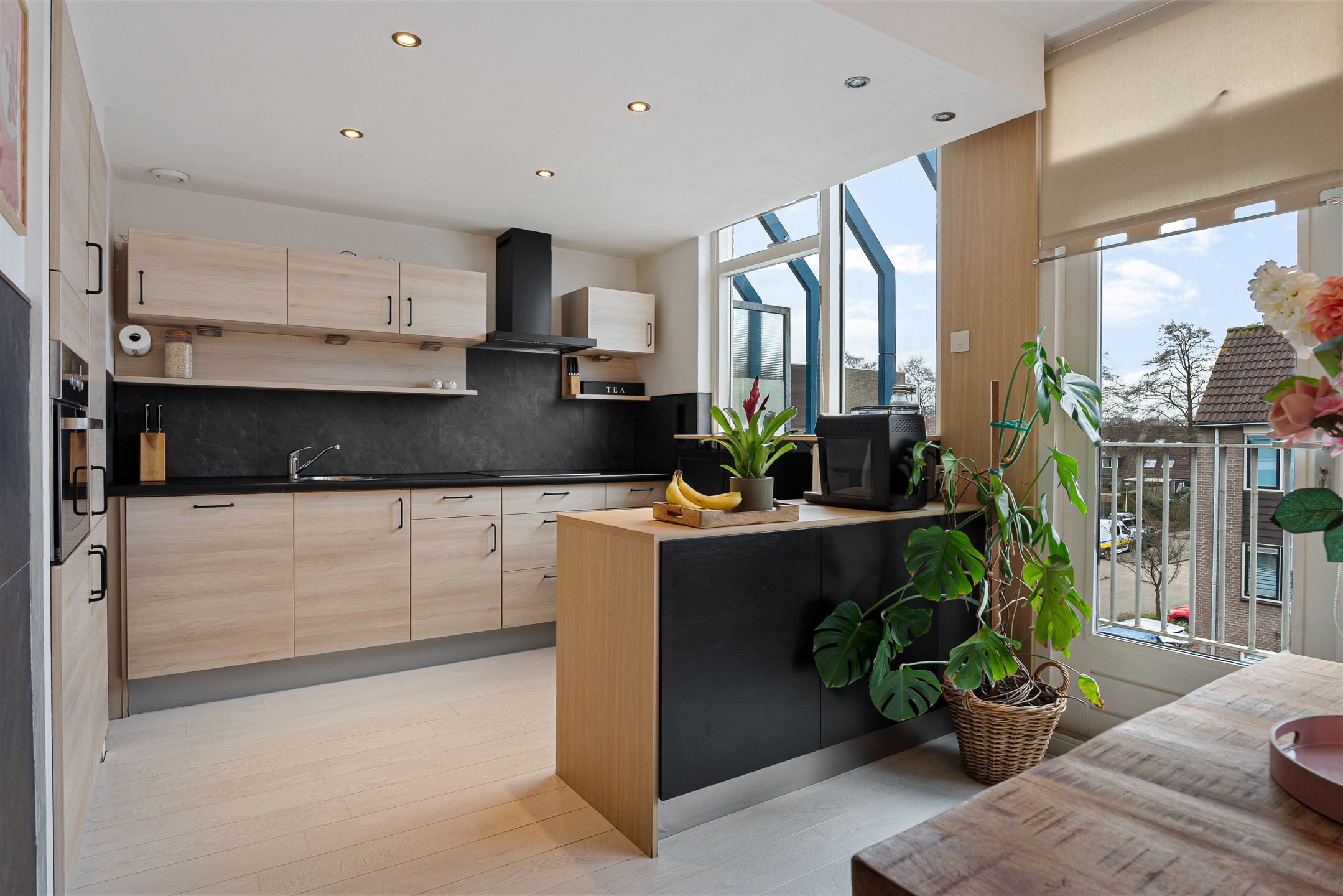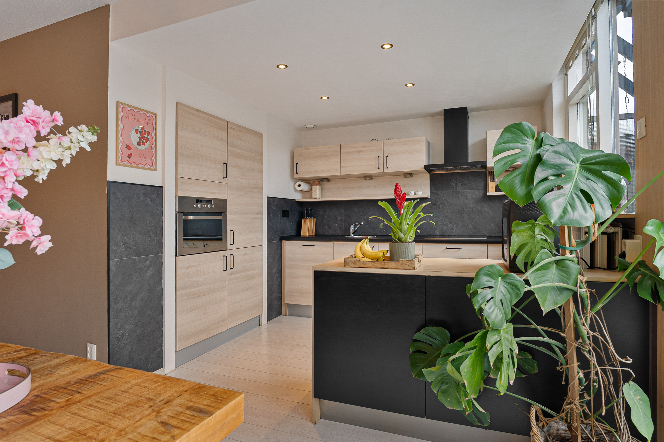 De woonkamer is heerlijk ruim en dankzij de grote raampartijen bijzonder licht. Vanuit hier heb je een vrij en prettig uitzicht. De open keuken sluit mooi aan op de leefruimte en is voorzien van een inductiekookplaat, afzuigkap, combi-oven, koel-vriescombinatie en voldoende kastruimte.
