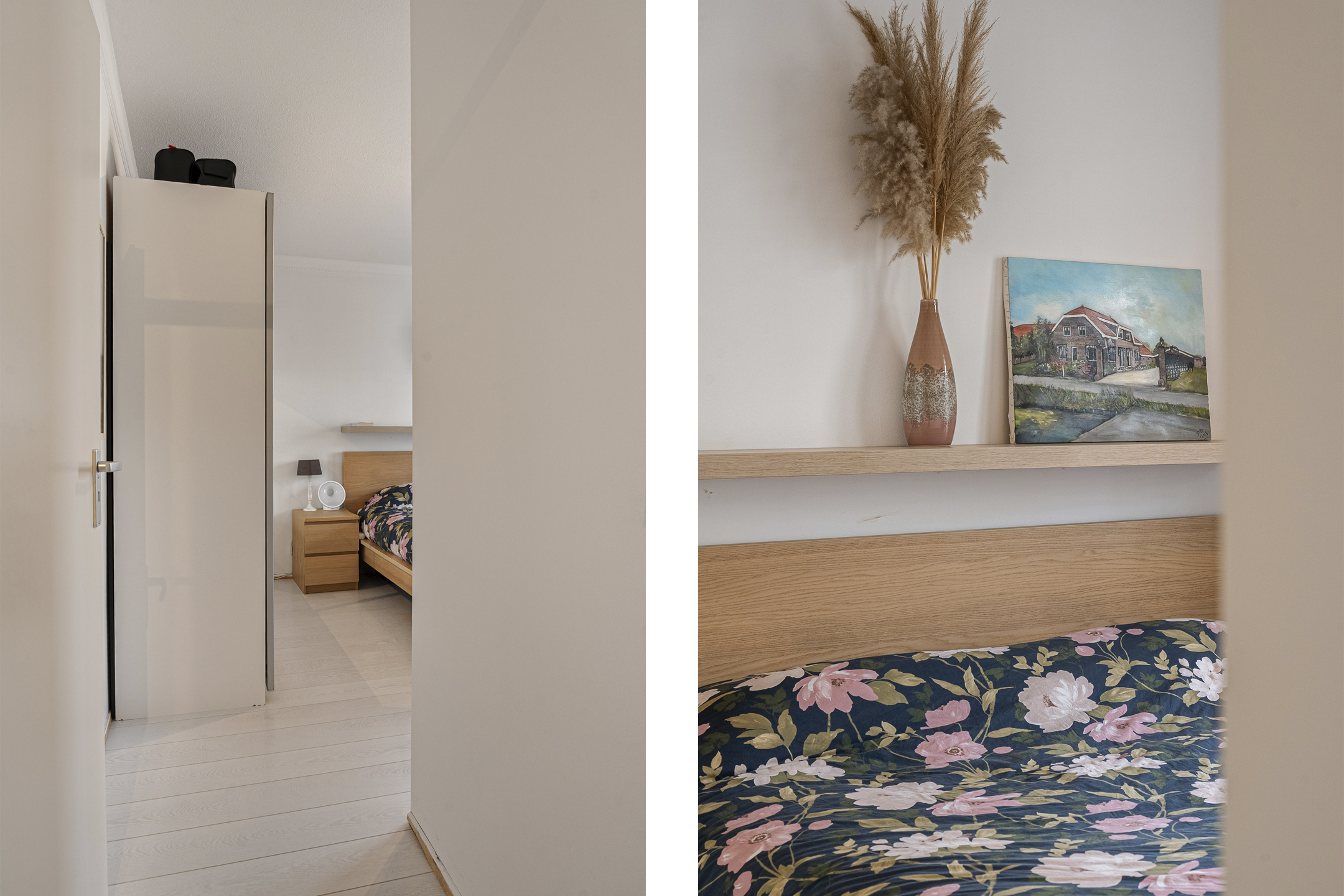 De twee ruime slaapkamers zijn gelegen aan de voorzijde (noordoosten) en bieden meer dan genoeg ruimte. De tweede slaapkamer is goed te gebruiken als werkkamer, hobbyruimte, tweede slaapkamer of inloopkast.