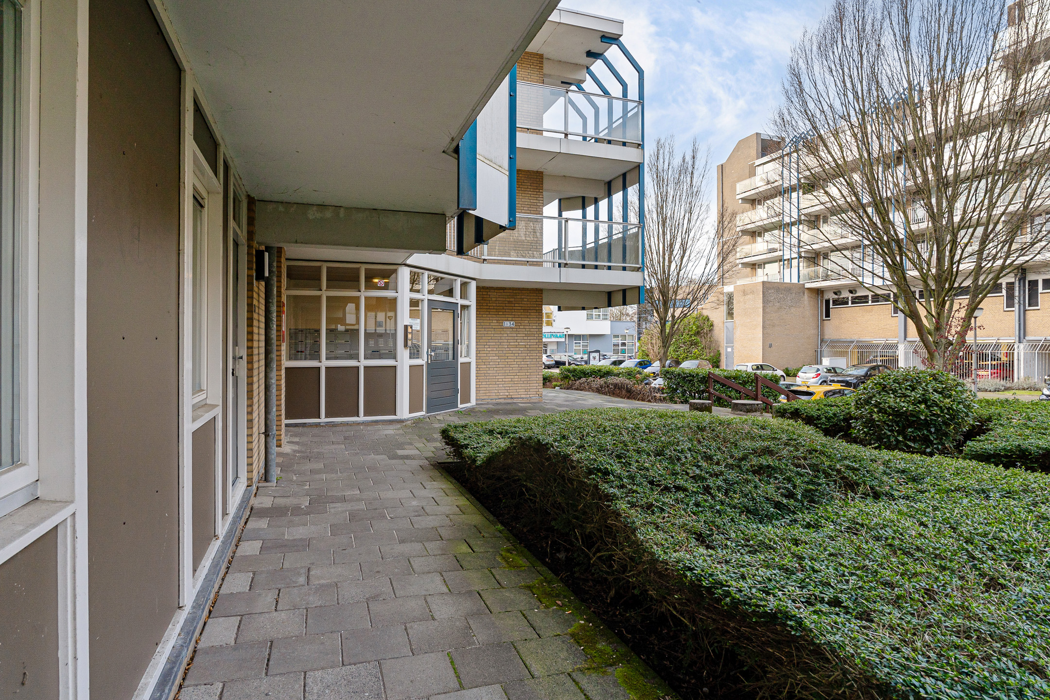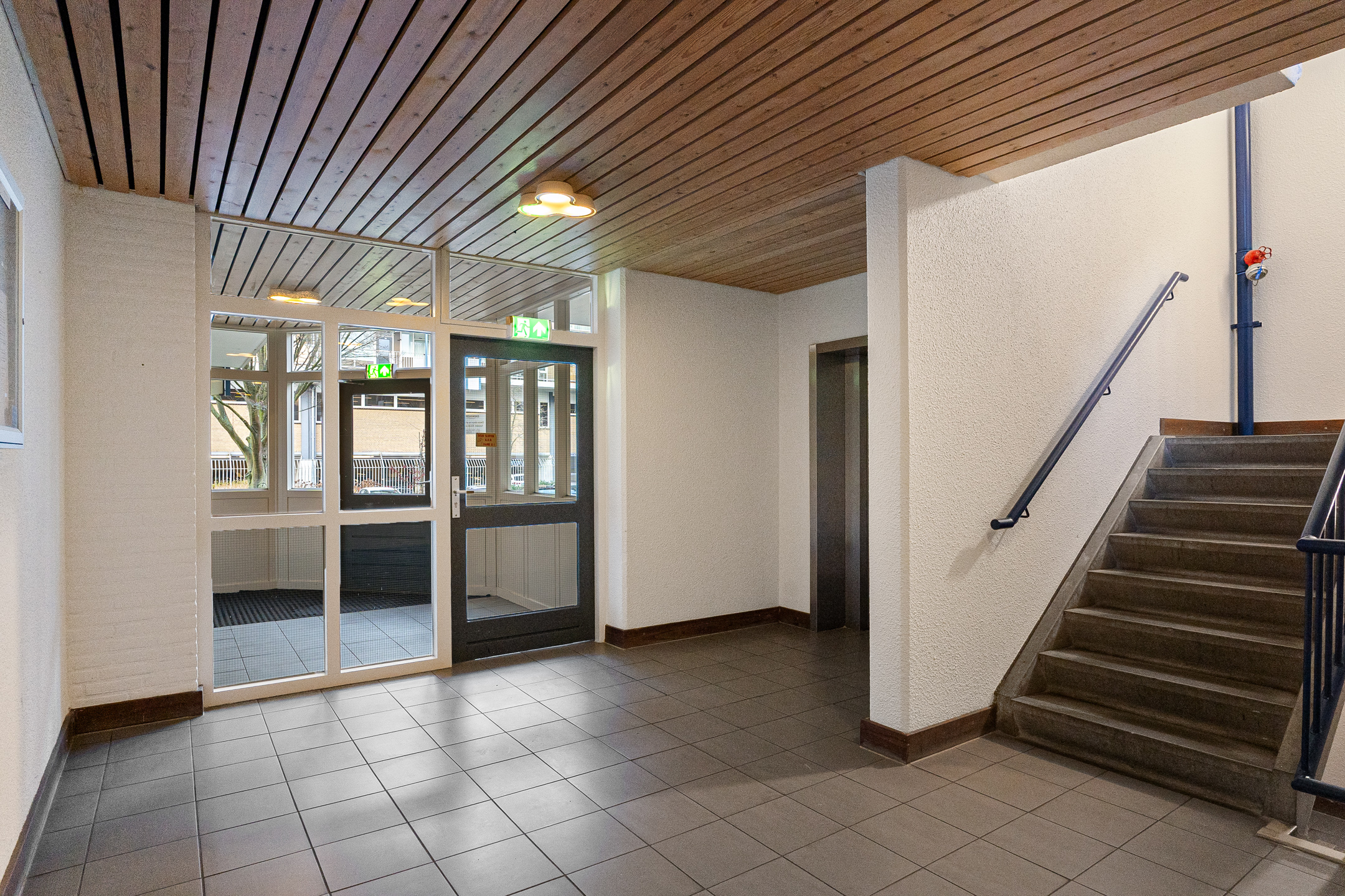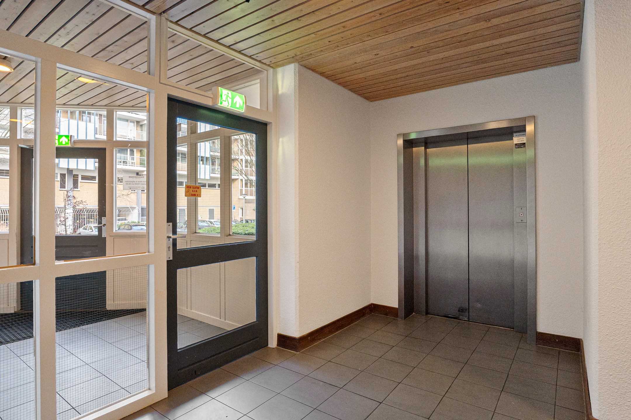 Het appartementencomplex beschikt over een nette centrale entree met brievenbussen, bellentableau en toegang tot de lift en het trappenhuis. Via de algemene hal is ook de separate berging te bereiken.
