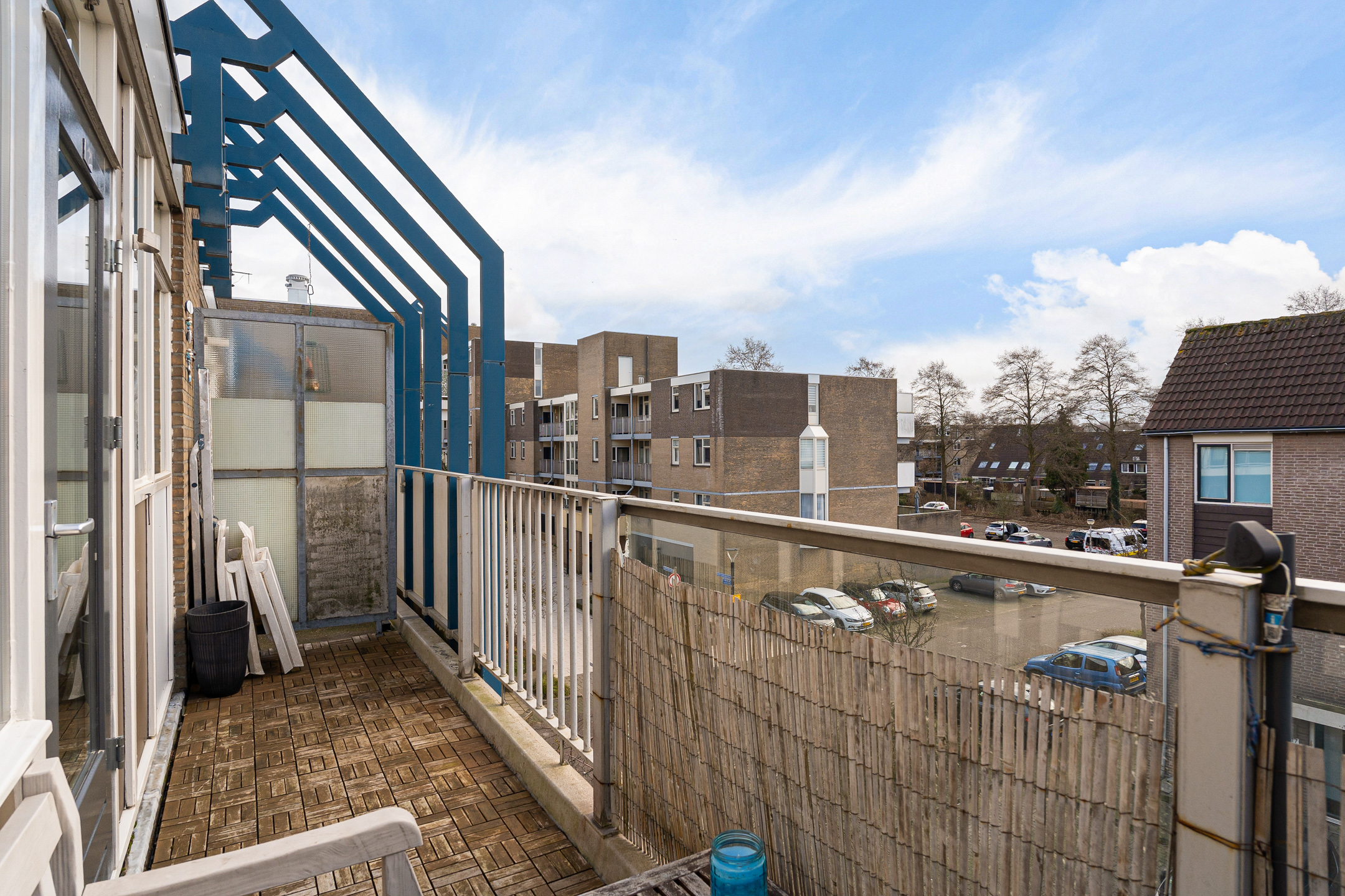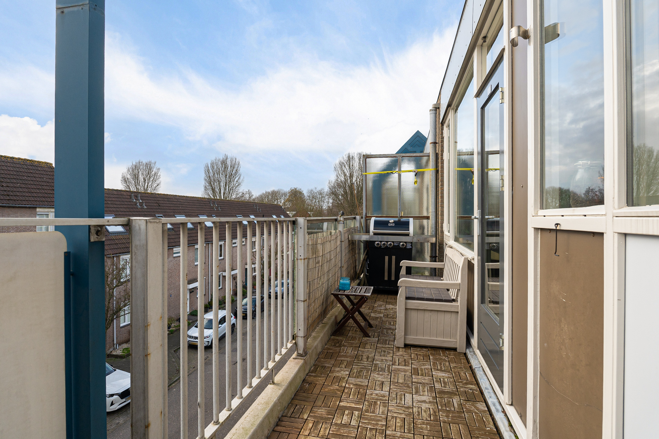 Via de woonkamer bereik je het balkon, gelegen op het zuidwesten. Hier geniet je vanaf de middag tot in de avond heerlijk van de zon en kun je een drukke dag rustig afsluiten.