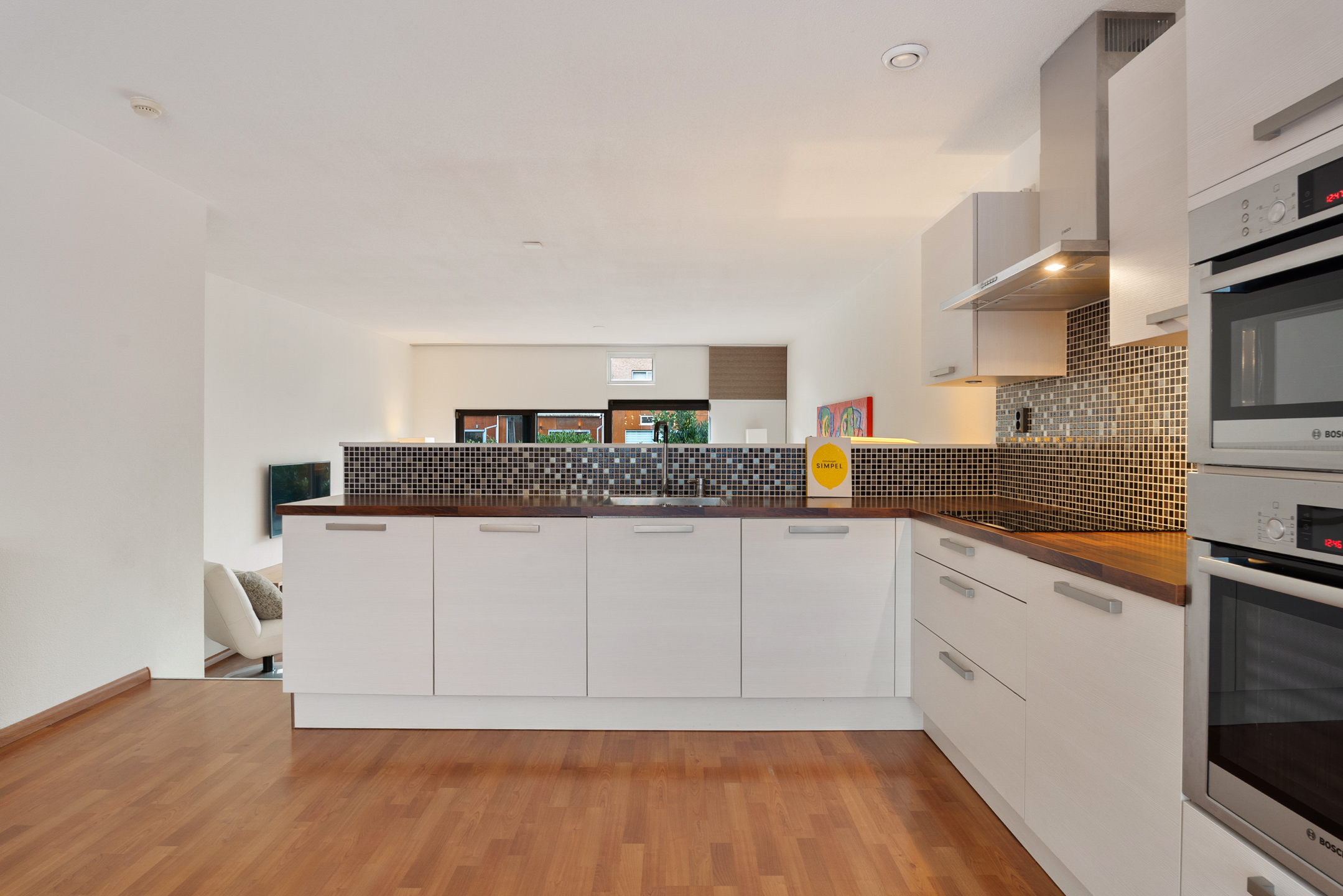 + Royale woonkeuken en speels ingedeelde woonkamer met hoog plafond