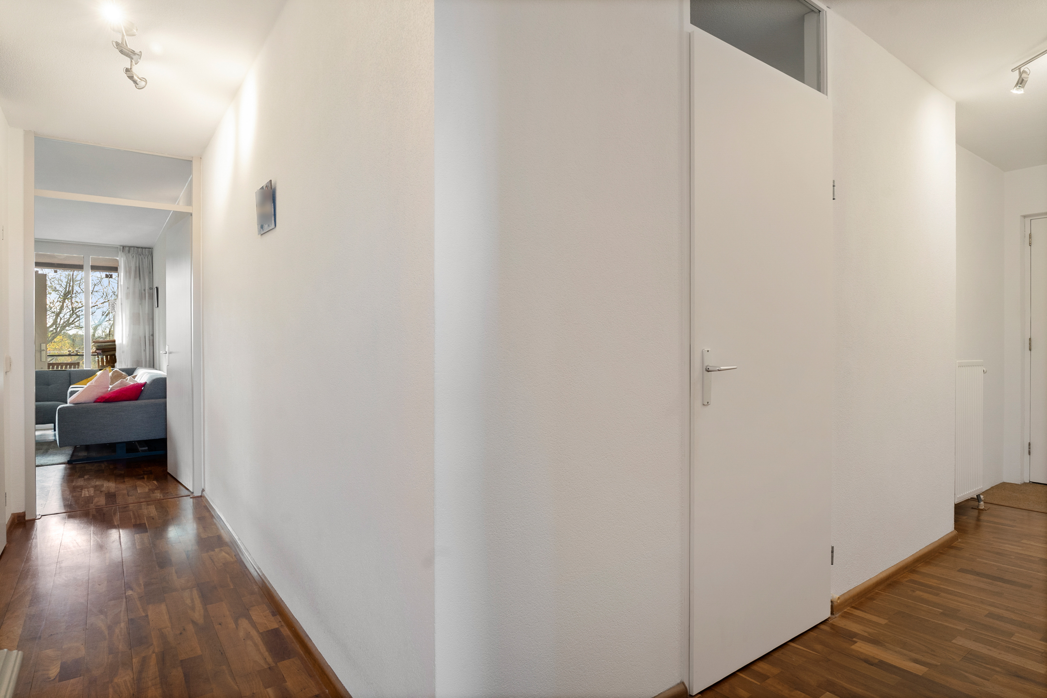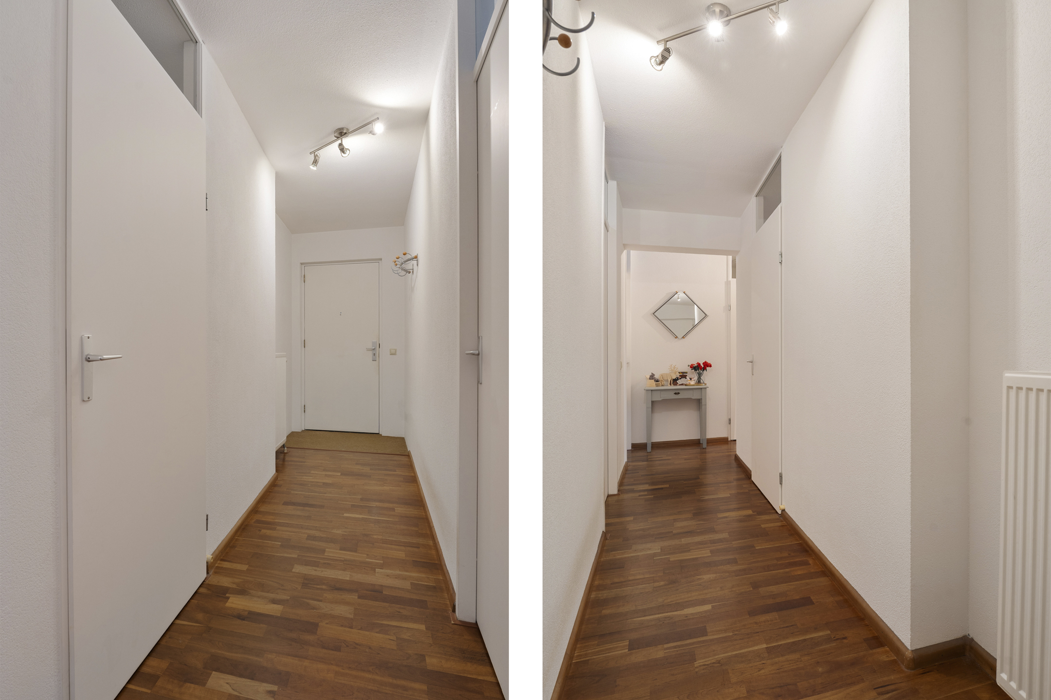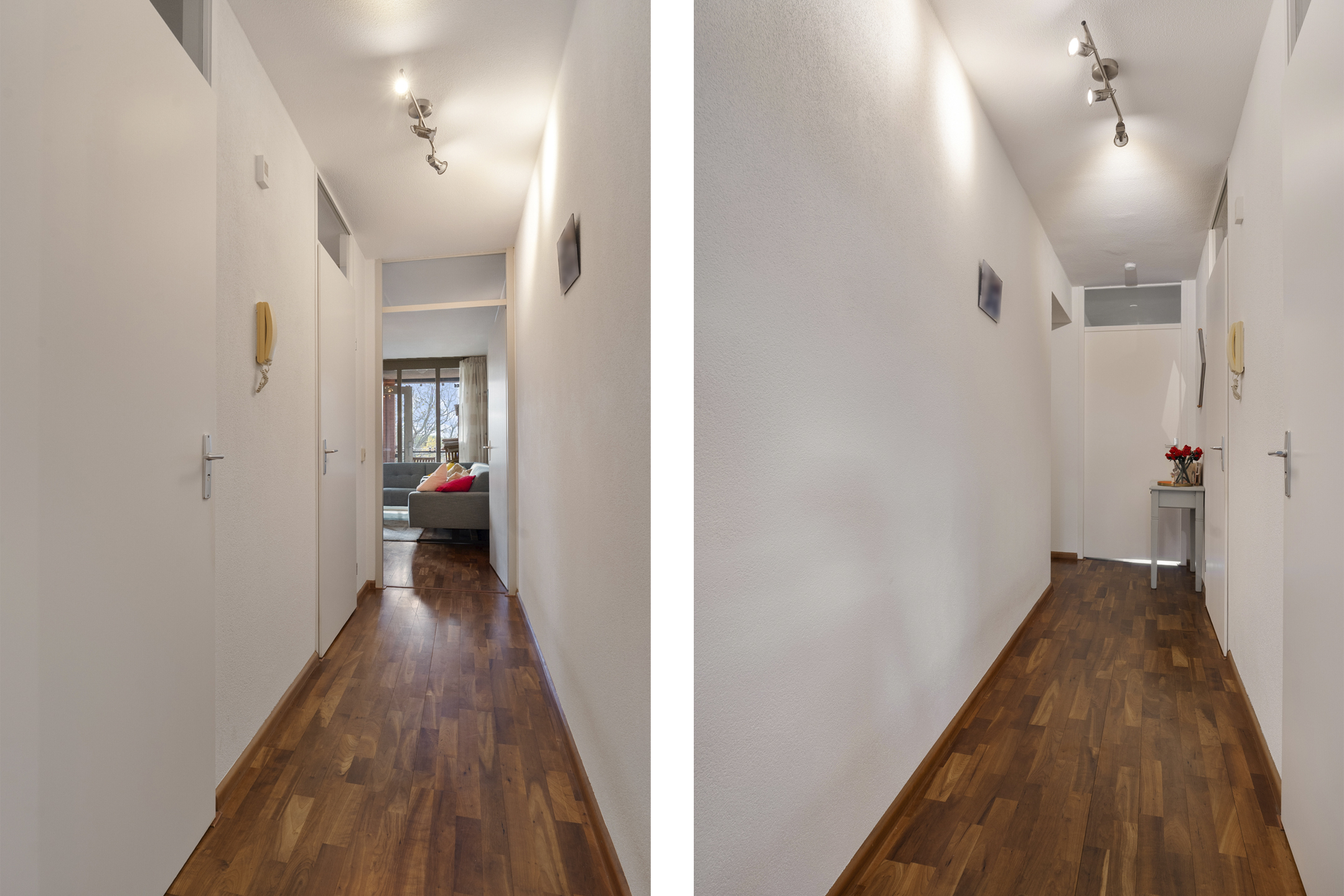 Via de nette hal stap je het appartement binnen. Vanuit hier heb je toegang tot de verschillende vertrekken, waaronder een praktische berging. De meterkast bevindt zich in de gang.