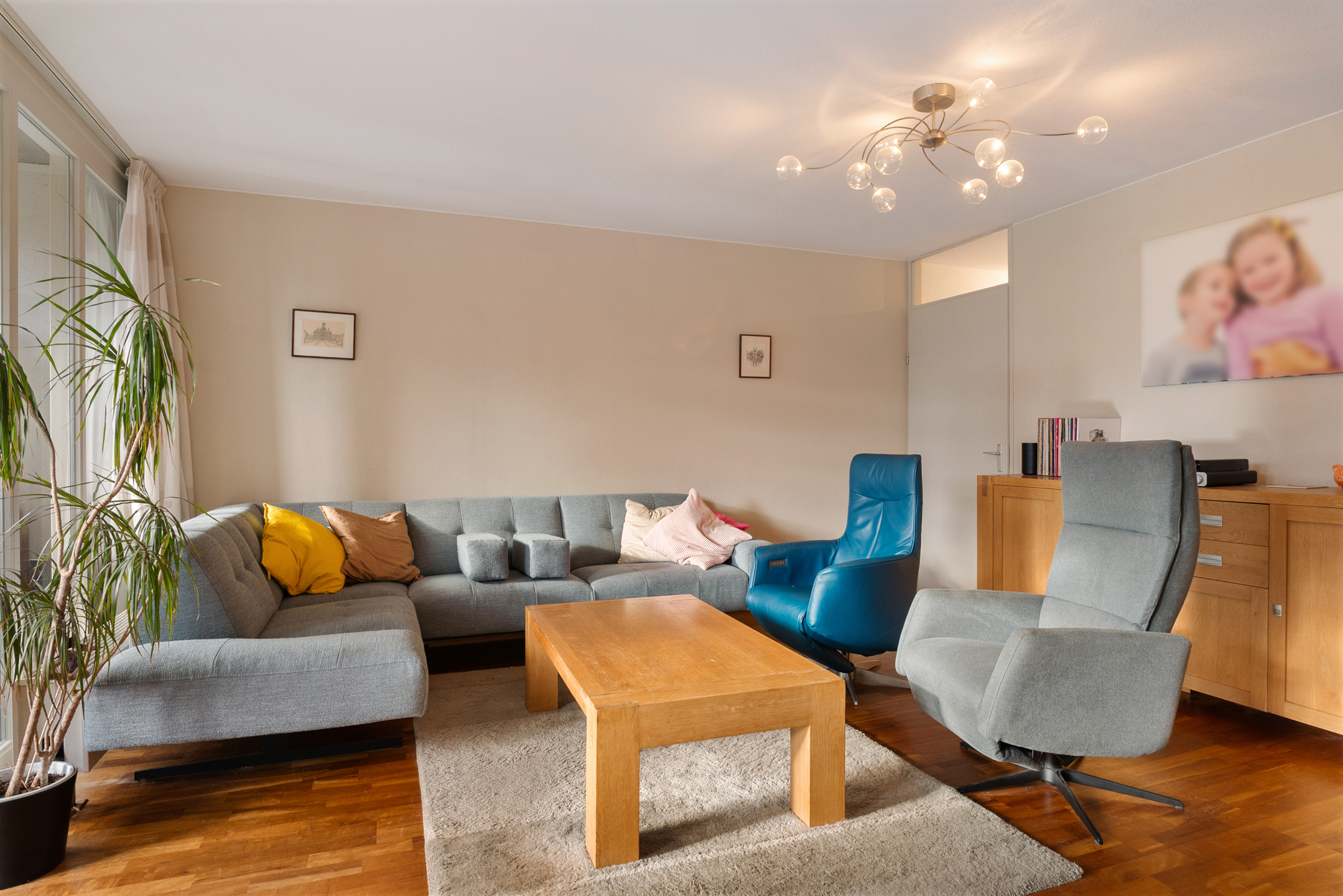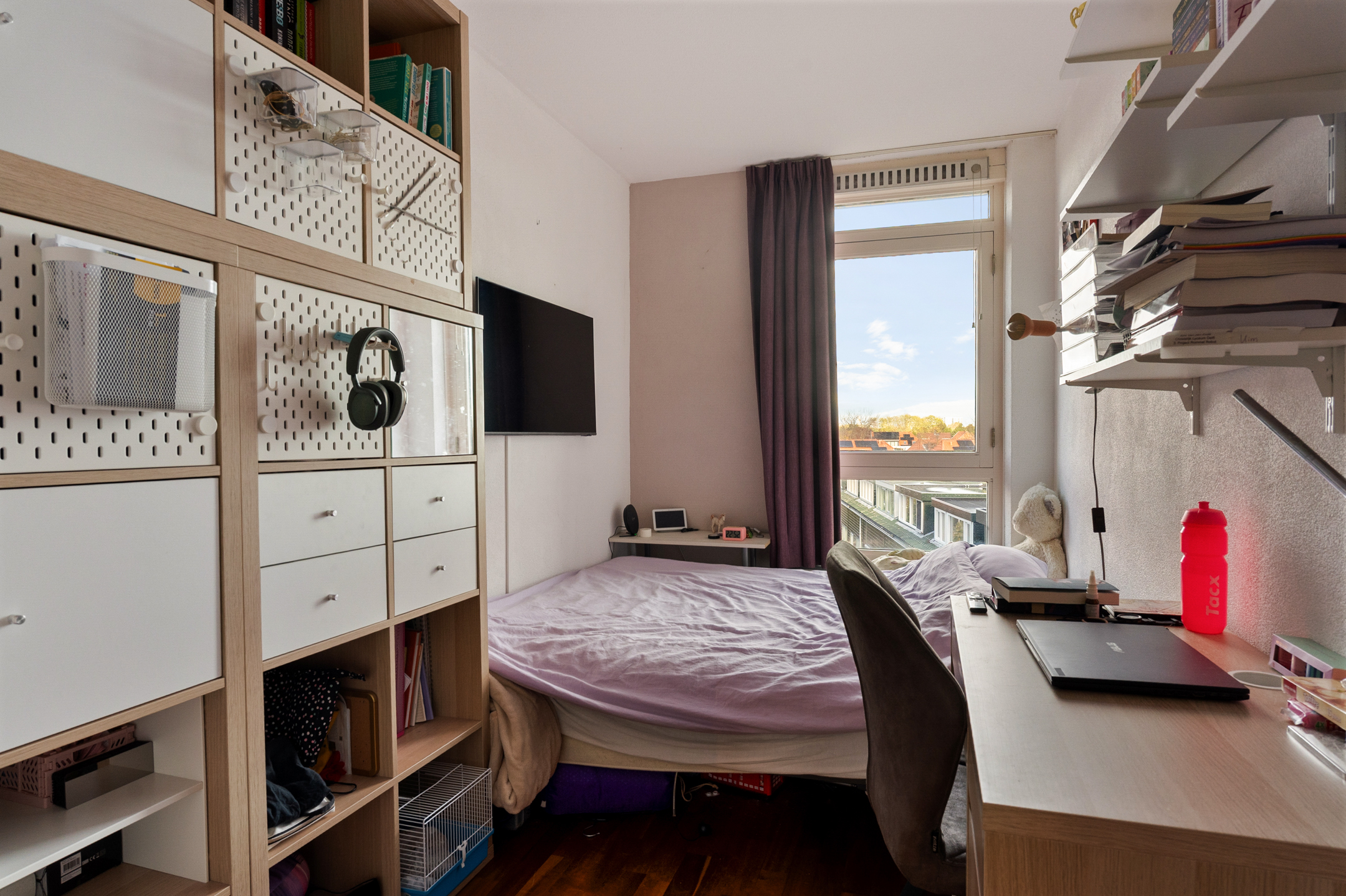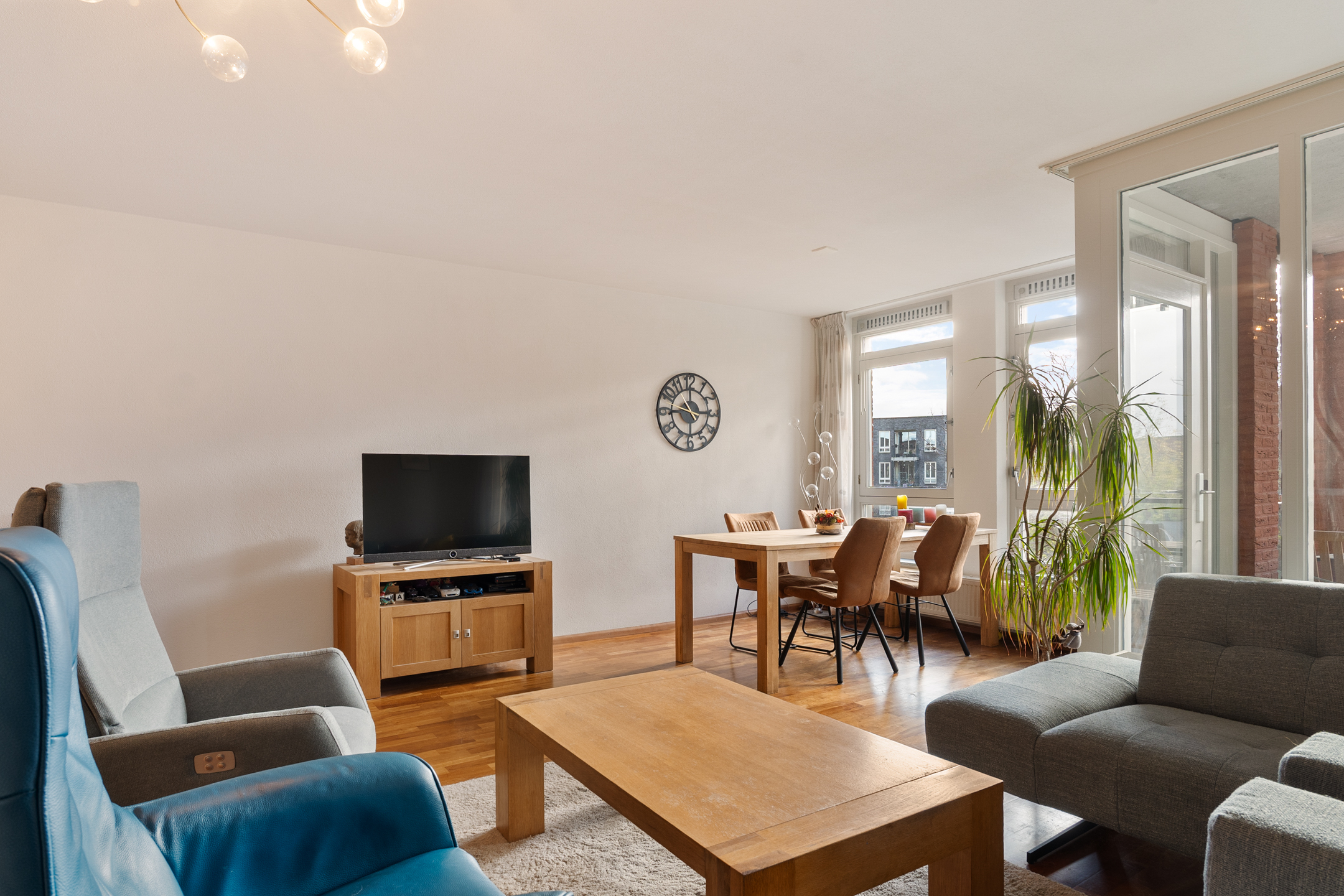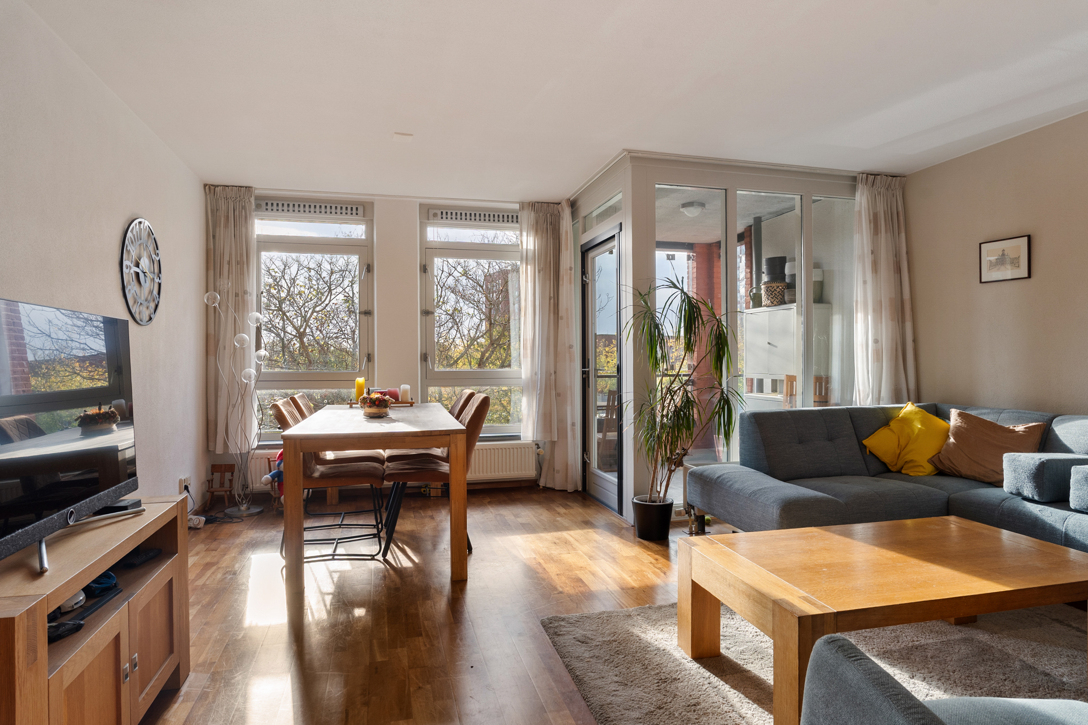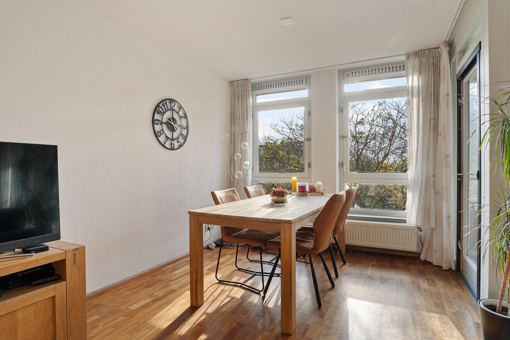 De woonkamer is ruim en sfeervol, met grote ramen die zorgen voor veel lichtinval. Via de openslaande deur kom je op het zonnige balkon, waar je geniet van een vrij en groen uitzicht.
