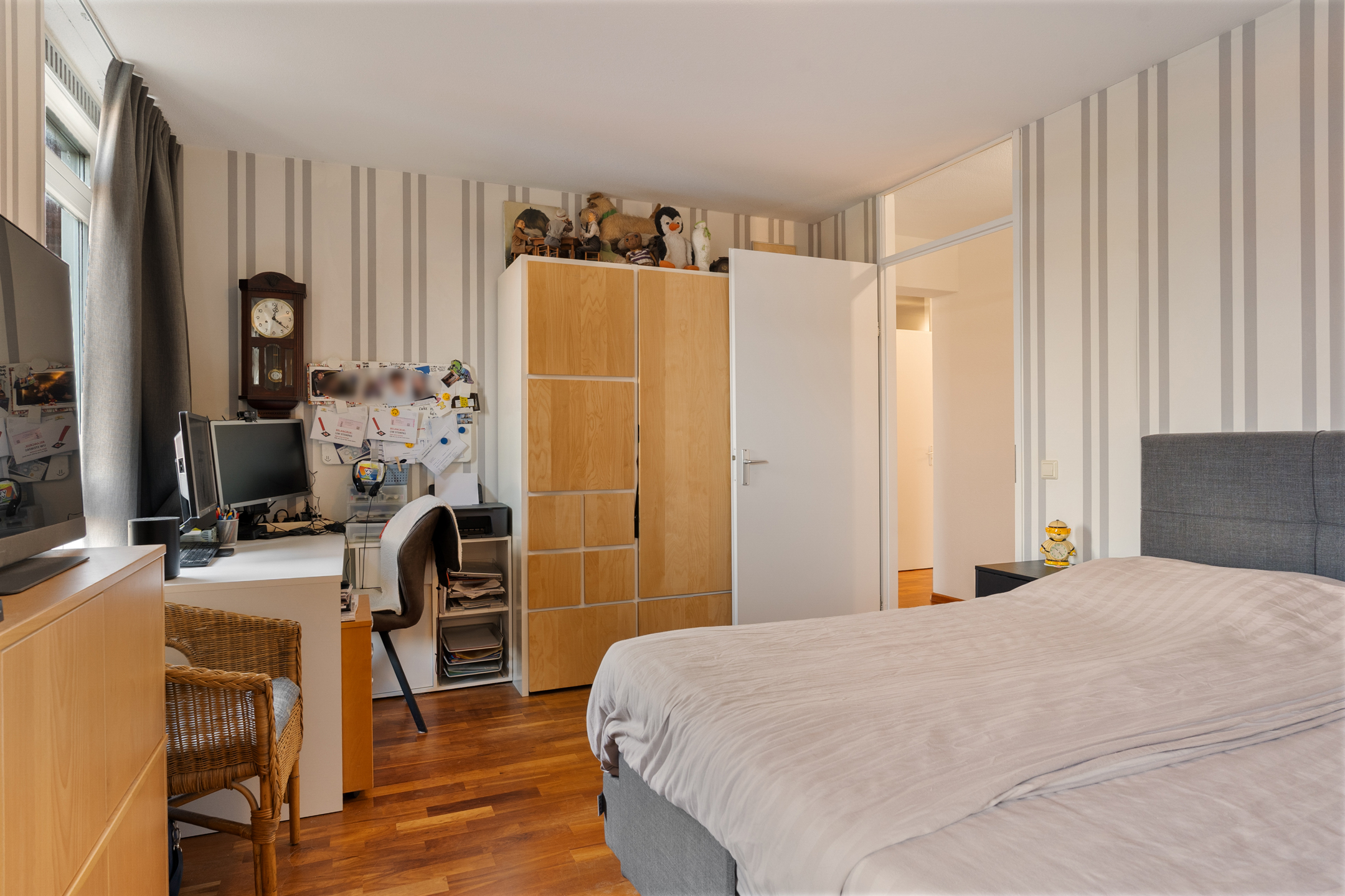 Aan de voorzijde liggen drie slaapkamers, waarvan twee bereikbaar zijn via de hal en de derde via de achterzijde van de keuken. De kamers zijn licht en functioneel, ideaal als slaap-, werk- of logeerkamer.